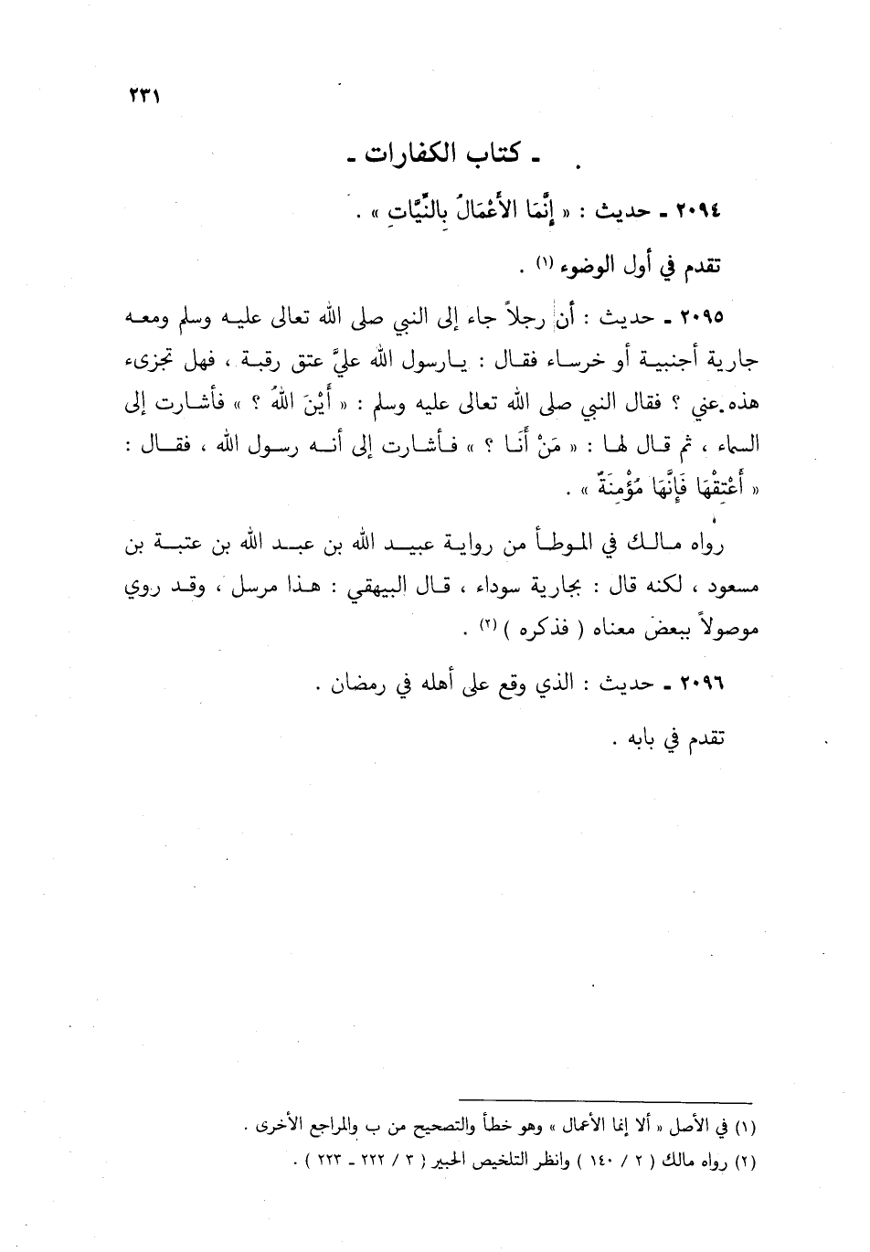 2094- حديث: "إنما الأعمال بالنيات".