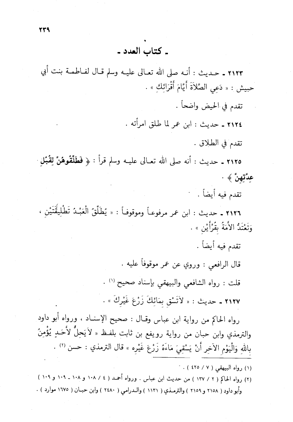 2123- حديث: أنه صلى الله تعالى عليه وسلم قال لفاطمة بنت أبي حبيش: "دعي الصلاة أيام أقرائك".