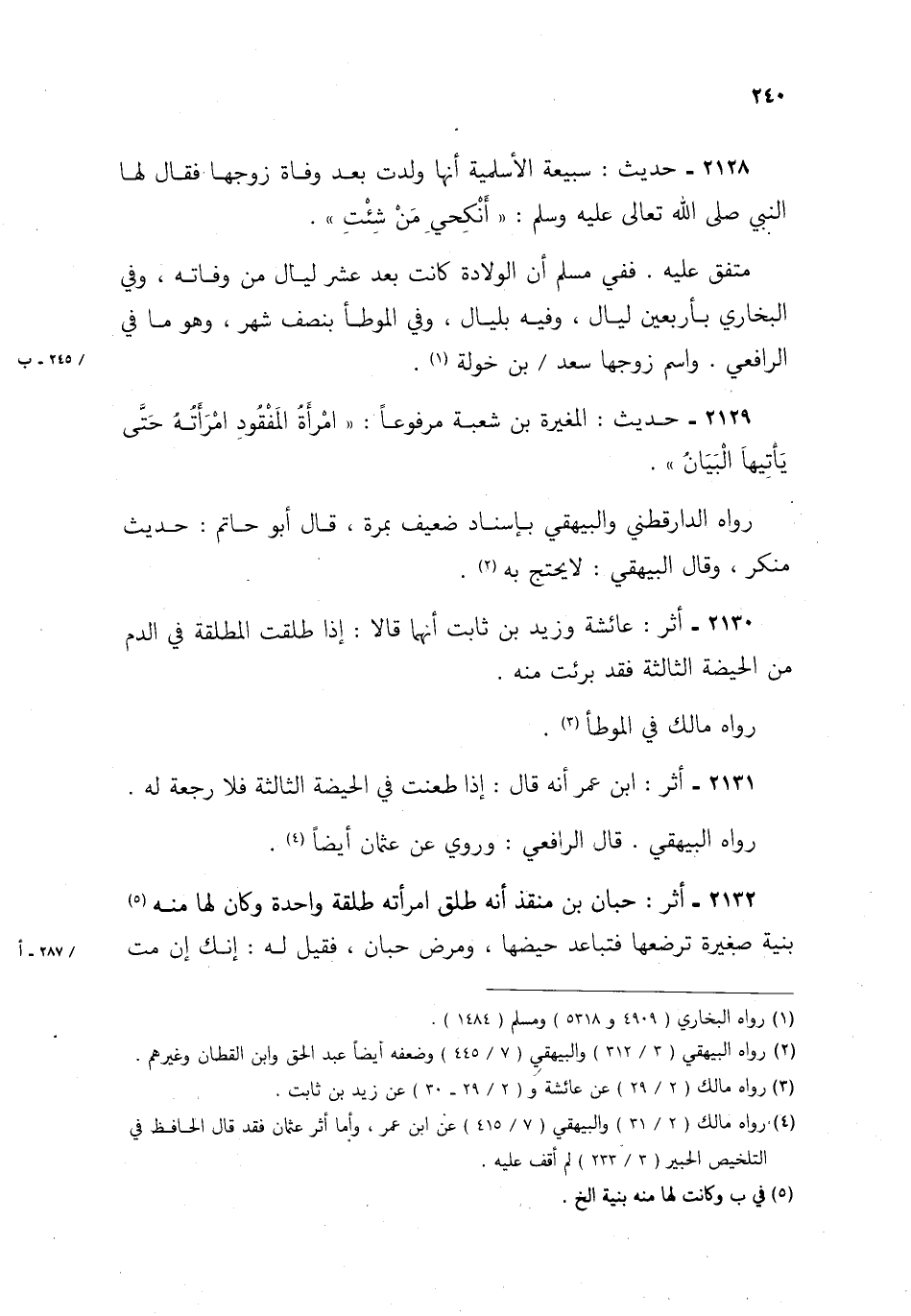 2132- أثر: حبان بن منقذ أنه طلق امرأته طلقة واحدة وكان لها منه5 بنية صغيرة ترضعها فتابعد حيضها، ومرض حبان، فقيل له: إنك إن مت