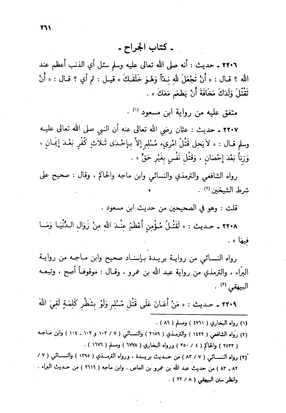 2207- حديث: عثمان رضي الله تعالى عنه أن النبي صلى الله تعالى عليه وسلم، قال: "لا يحل قتل امرئ مسلم إلا بإحدى ثلاث كفر بعد إيمان، وزنا بعد إحصان، وقتل نفس بغير حق".