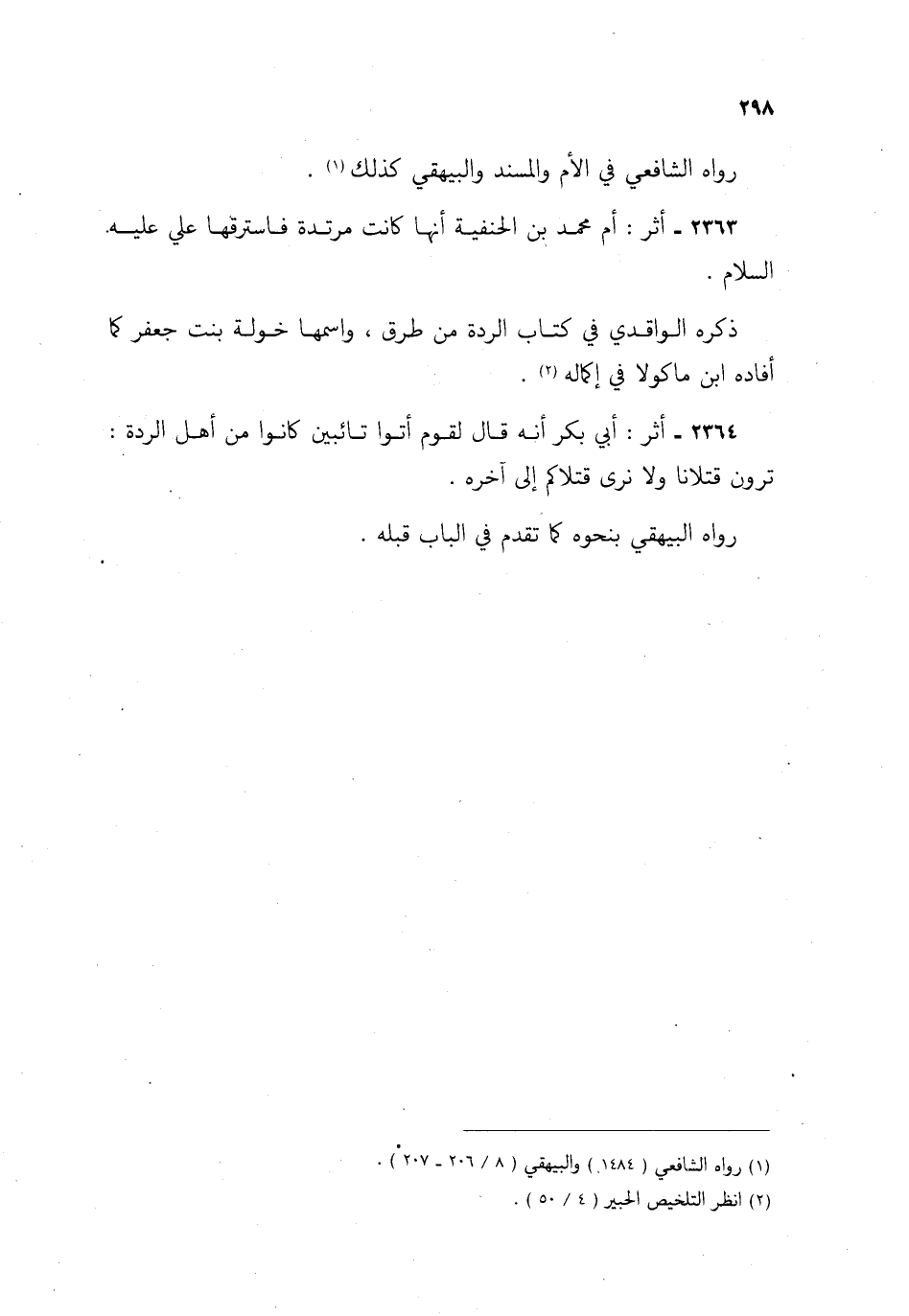 2363- أثر: أم محمد بن الحنفية أنها كانت مرتدة فاسترقها علي عليه السلام.