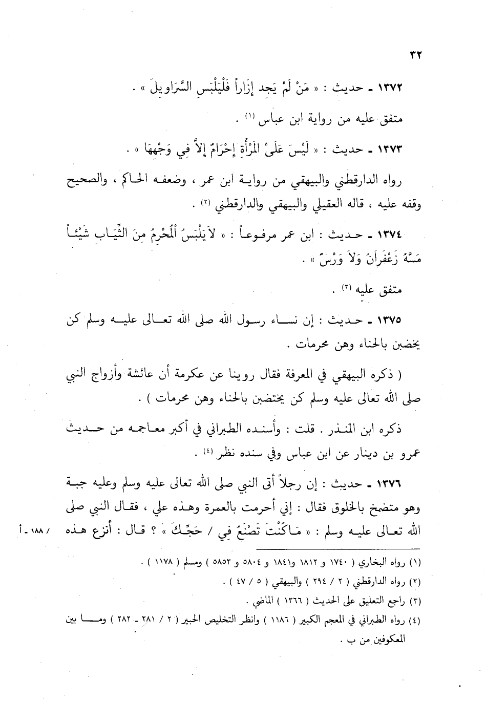 1375- حديث: إن نساء رسول الله صلى الله تعالى عليه وسلم كن يخضبن بالحناء وهن محرمات.