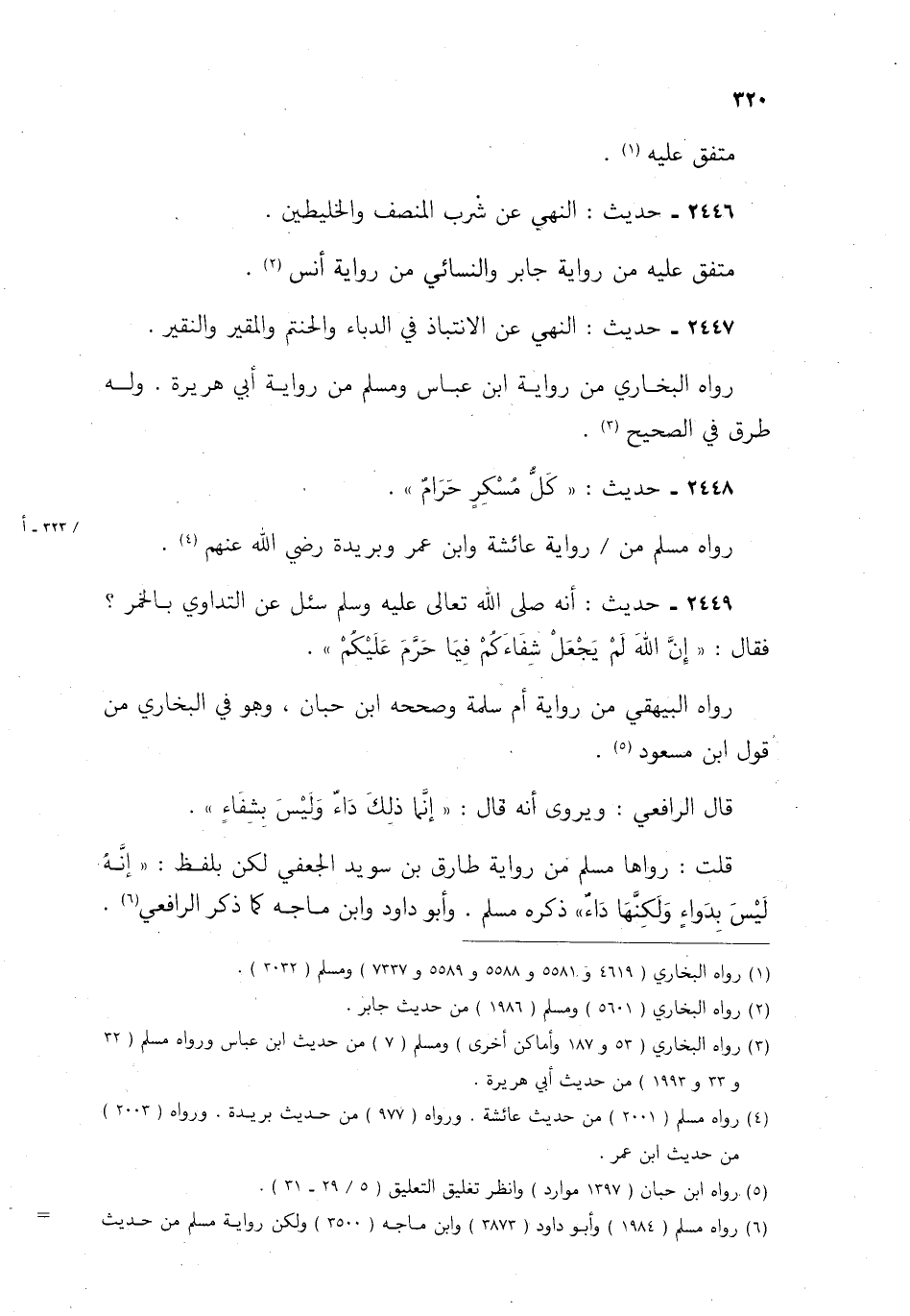 6 رواه مسلم 1984 وأبو داود 2873 وابن ماجه 3500 ولكن رواية مسلم من حديث وائل بن حجر أن طارق بن سويد. ورواية أبي داود بالشك في طارق بن سويد بن طارق.