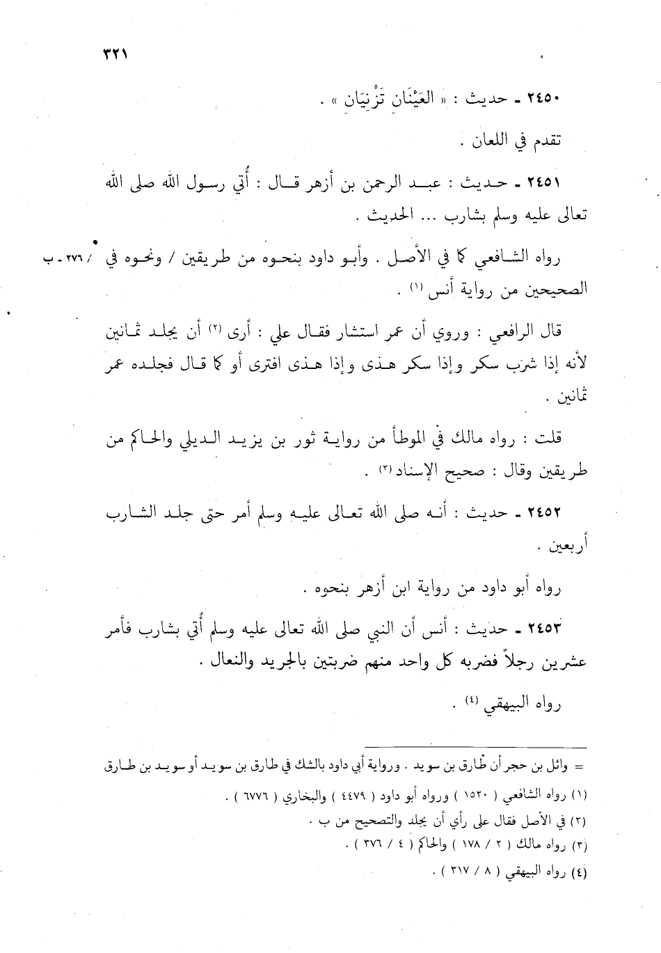 2453- حديث: أنس أن النبي صلى الله تعالى عليه وسلم أتى بشارب فأمر عشرين رجلًا فضربه كل واحد منهم ضربتين بالجريد والنعال.