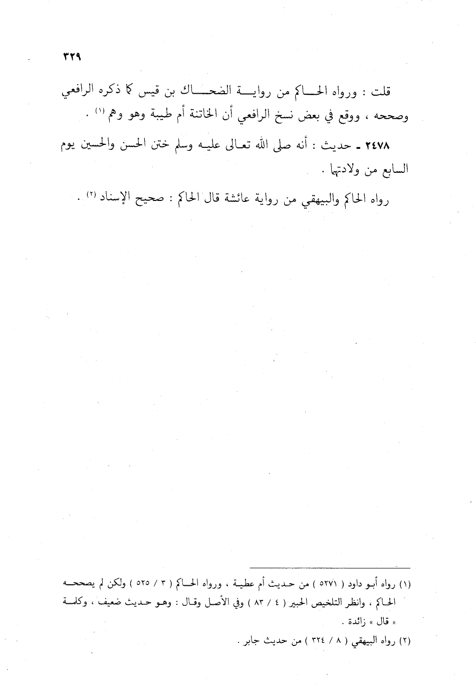 2478- حديث: أنه صلى الله تعالى عليه وسلم ختن الحسن والحسين يوم السابع من ولادتهما.