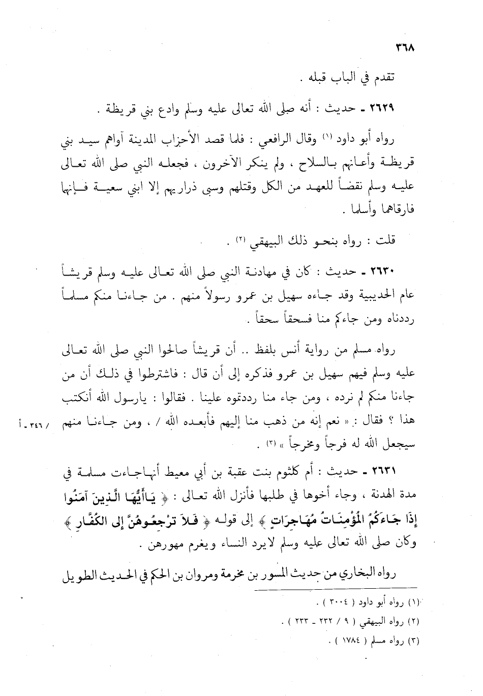2631- حديث: أم كلثوم بنت عقبة بن أبي معيط أنها جاءت مسلمة في مدة الهدنة، وجاء أخوها في طلبها فأنزل الله تعالى: {يَا أَيُّهَا الَّذِينَ آمَنُوا إِذَا جَاءَكُمْ الْمُؤْمِنَاتُ مُهَاجِرَات} إلى قوله: {فَلا تَرْجِعُوهُنَّ إِلَى الْكُفَّارِ} كان صلى الله تعالى عليه وسلم لا يرد النساء ويغرم مهورهن.