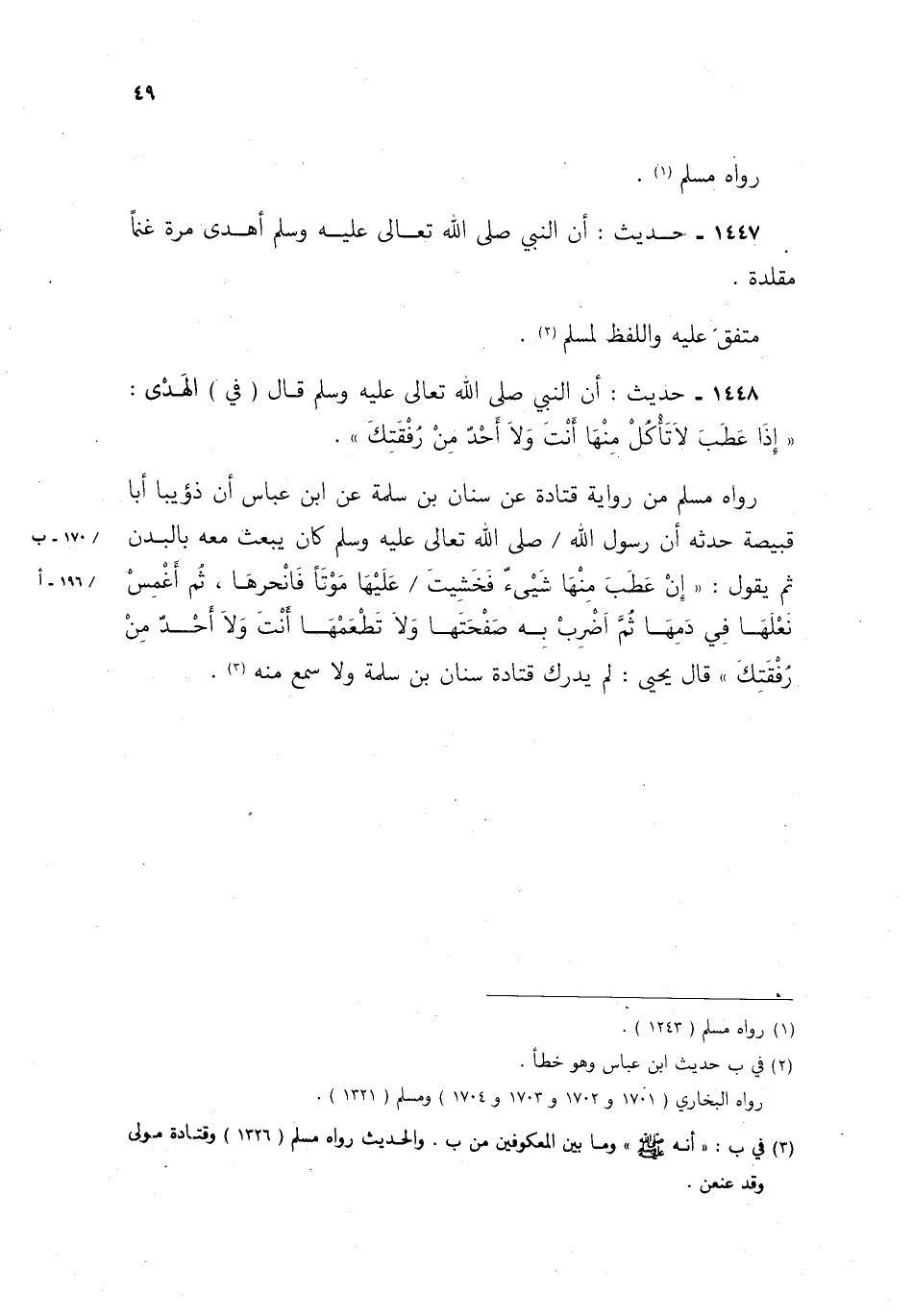 4 في ب: أنه صلى الله عليه وسلم وما بين المعكوفين من ب. والحديث رواه مسلم 1326 وقتادة مولى وقد عنعن.