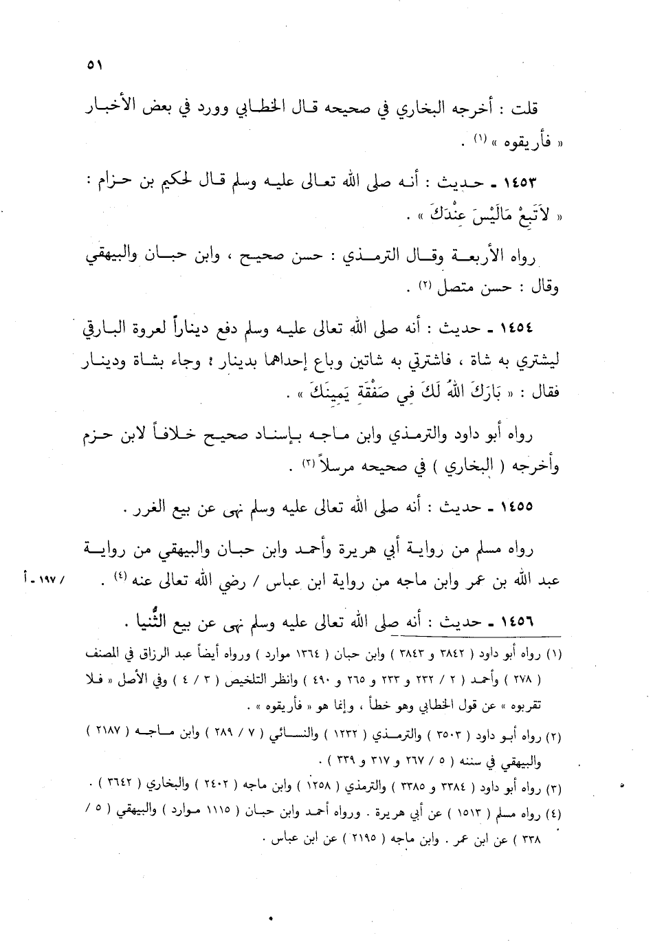 1453- حديث: أنه صلى الله تعالى عليه وسلم قال لحكيم بن حزام: "لا تبع ما ليس عندك".