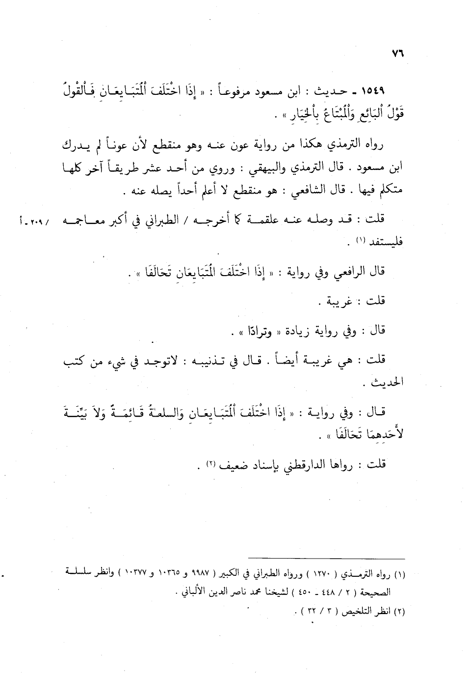 1549- حديث: ابن مسعود مرفوعًا: "إذا اختلف المتبايعان فالقول قول البائع والمبتاع بالخيار".