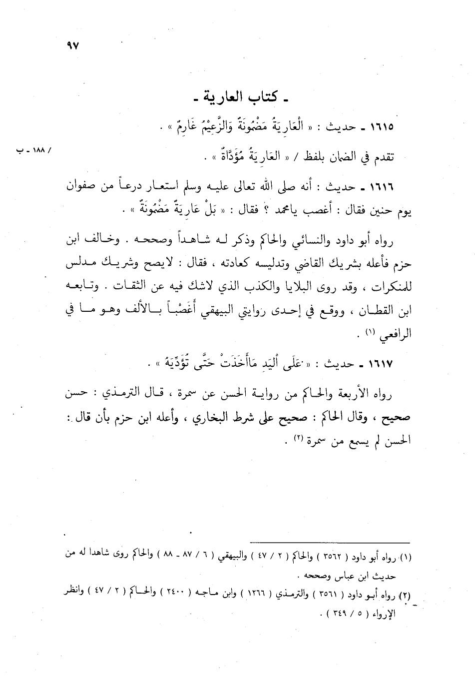 1615- حديث: "العارية مضمونة والزعيم غارم".
