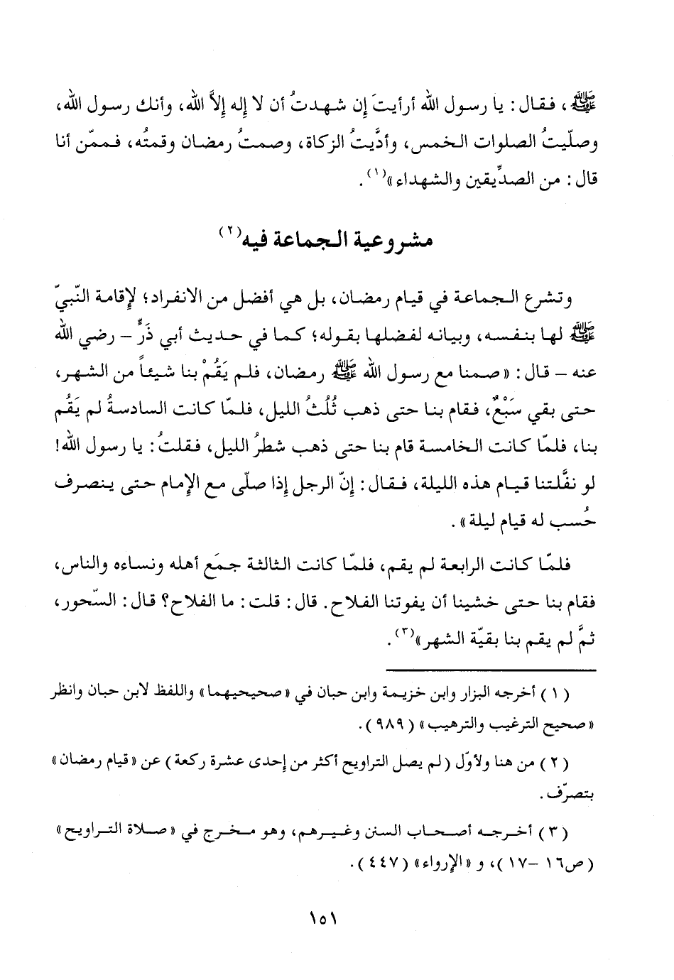 (¬3) أخرجه أصحاب السنن وغيرهم، وهو مخرج في "صلاة التراويح" (ص 16 - 17)، و"الإِرواء" (447).