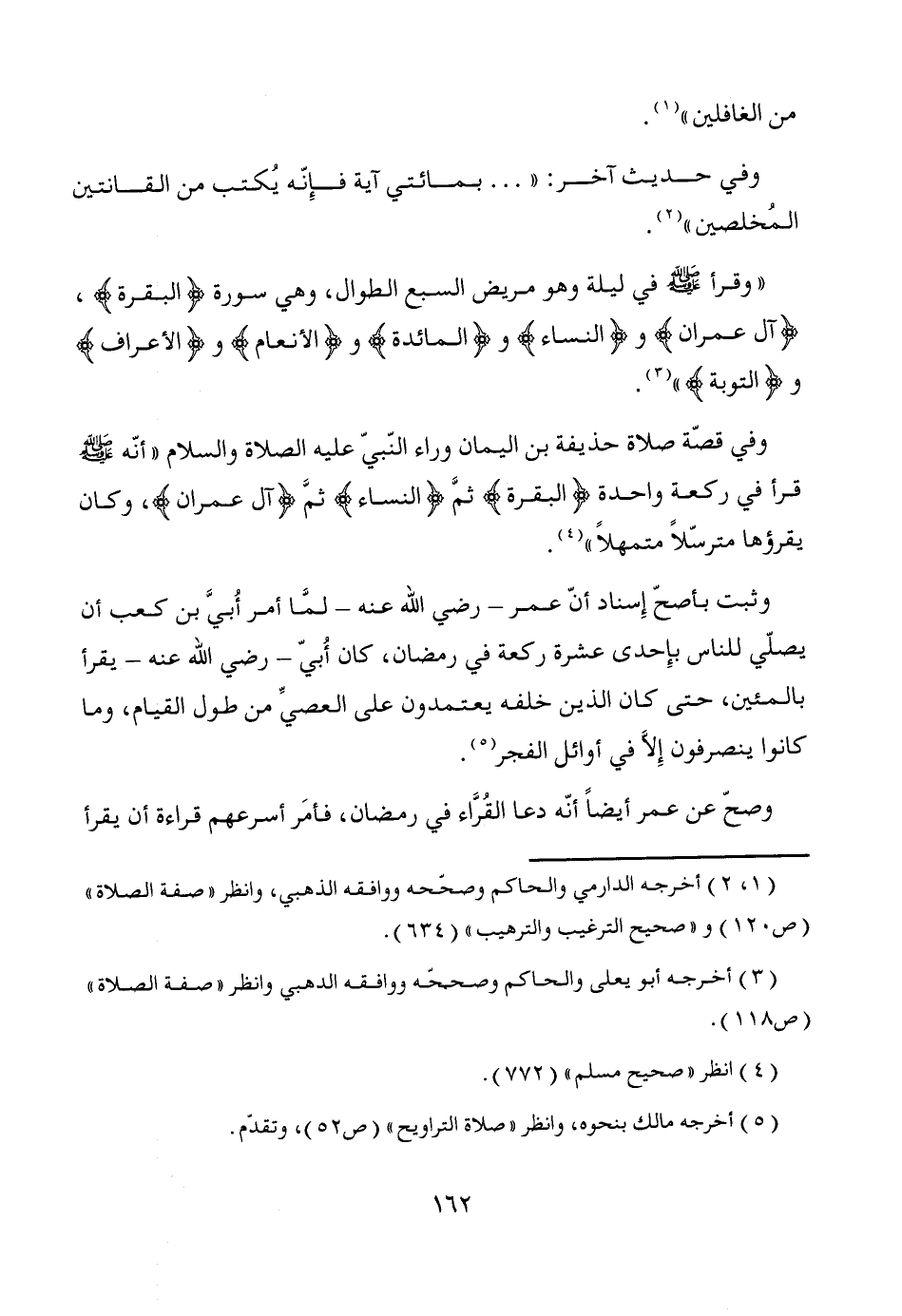 وفي قصّة صلاة حذيفة بن اليمان وراء النّبيّ عليه الصلاة والسلام "أنّه - صَلَّى اللَّهُ عَلَيْهِ وَسَلَّمَ - قرأ في ركعة واحدة {البقرة} ثمَّ {النساء} ثمَّ {آل عمران}، وكان يقرؤها مترسّلاً متمهلاً" (¬4).