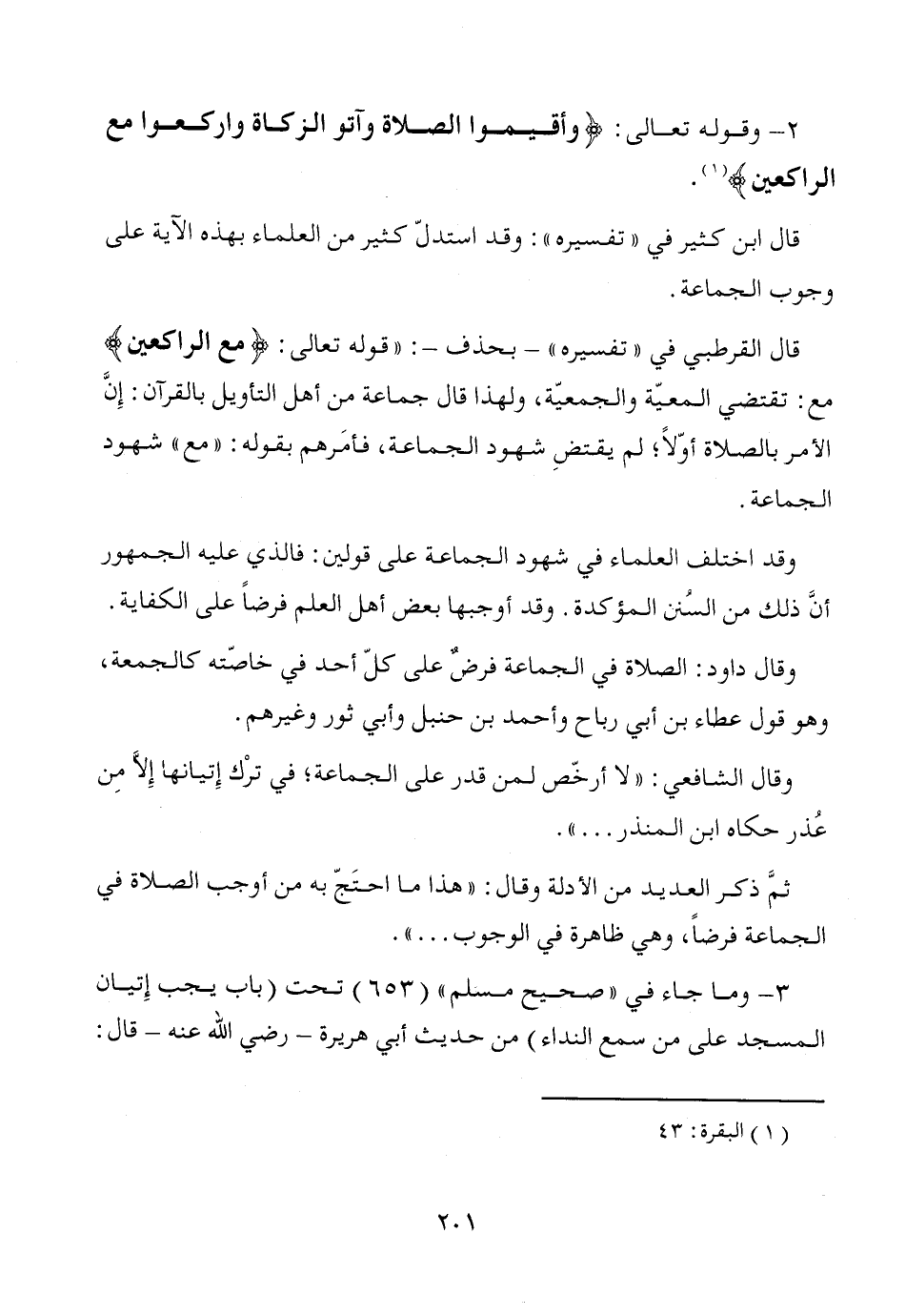 2 - وقوله تعالى: {وأقيموا الصلاة وآتو الزكاة واركعوا مع الراكعين} (¬1).