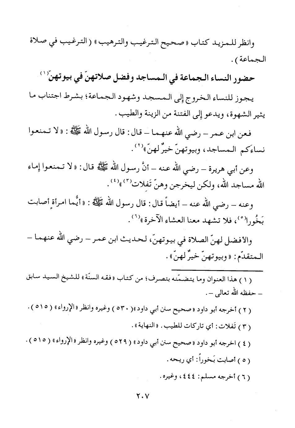 حضور النساء الجماعة في المساجد وفضل صلاتهنّ في بيوتهنّ (¬1)