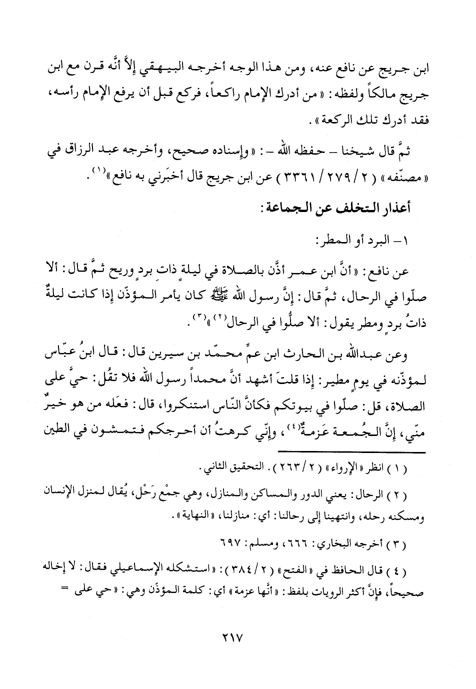 ثمَّ قال شيخنا -حفظه الله-: "وإِسناده صحيح، وأخرجه عبد الرزاق في "مصنّفه" (2/ 279/3361) عن ابن جريج قال أخبَرني به نافع" (¬1).