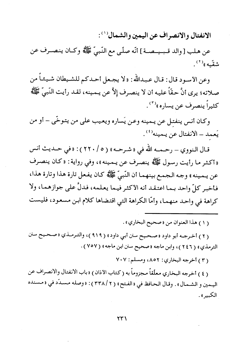 (¬4) أخرجه البخاري معلّقاً مجزوماً به (كتاب الأذان) "باب الانفتال والانصراف عن اليمين والشمال". وقال الحافظ في "الفتح" (2/ 338): "وصله مسدّد في "مسنده الكبير".