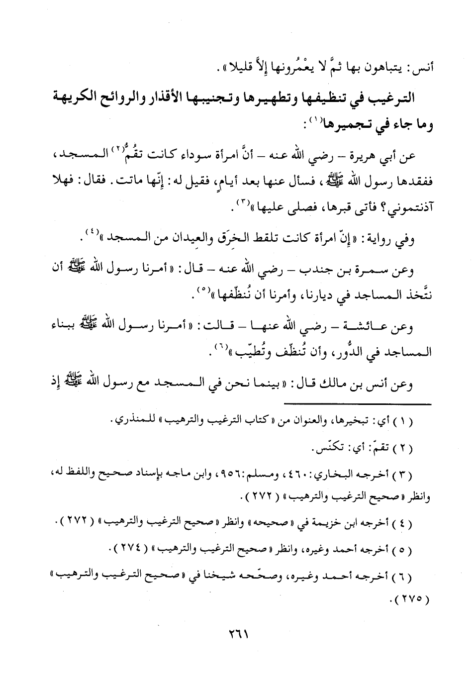 الترغيب في تنظيفها وتطهيرها وتجنيبها الأقذار والروائح الكريهة وما جاء في تجميرها (¬1):