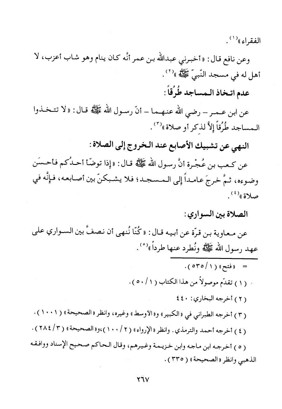 عن ابن عمر -رضي الله عنهما- أنّ رسول الله - صَلَّى اللَّهُ عَلَيْهِ وَسَلَّمَ - قال: "لا تتخذوا المساجد طُرُقاً إلاَّ لذِكر أو صلاة" (¬3).