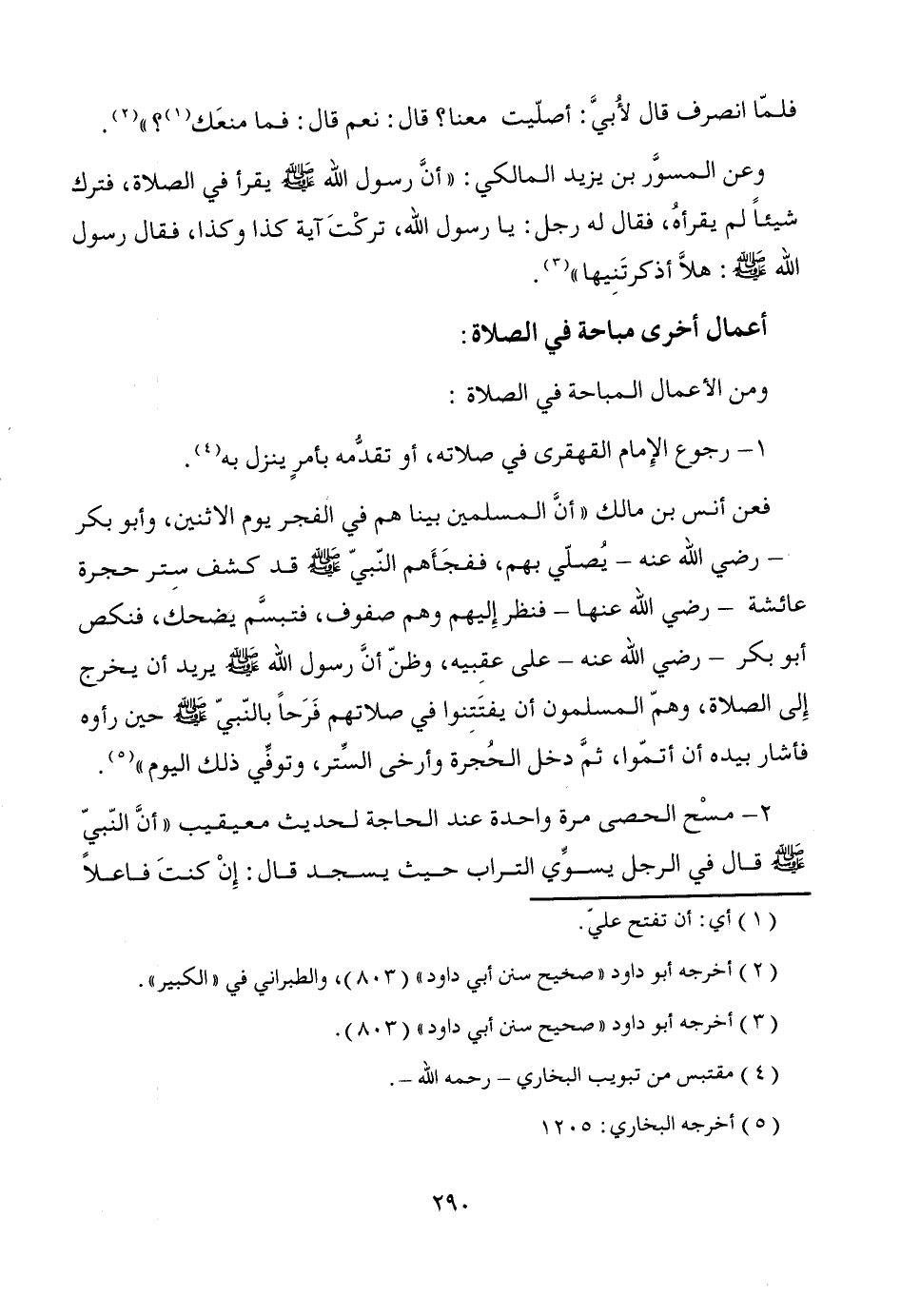 أعمال أخرى مباحة في الصلاة: