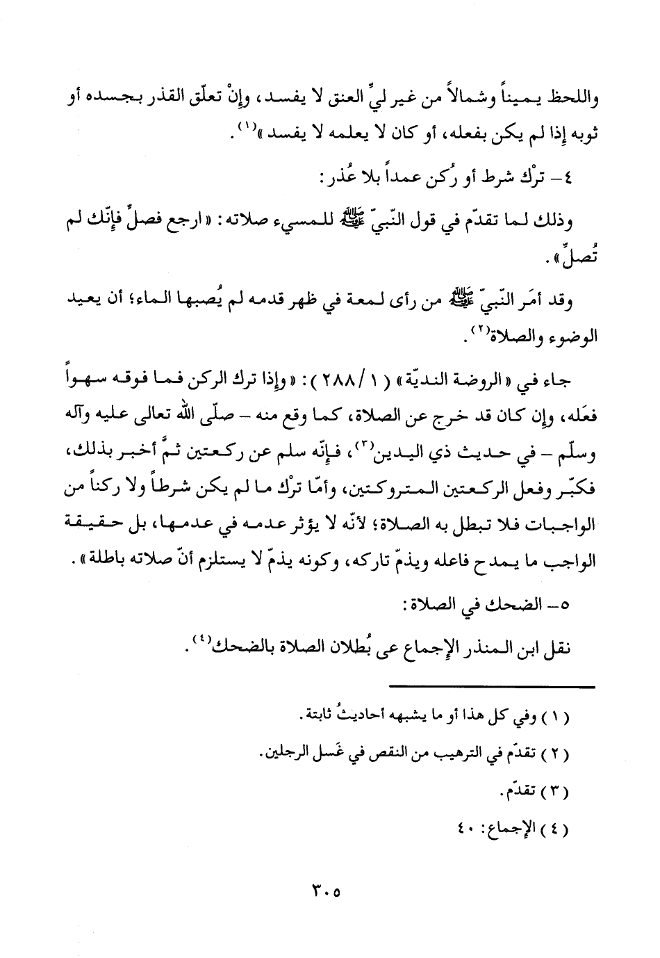 4 - ترْك شرط أو رُكن عمداً بلا عُذر: