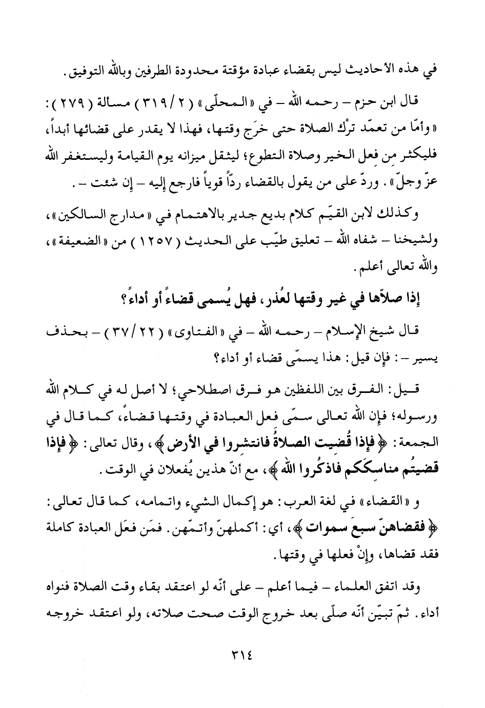 قال شيخ الإِسلام -رحمه الله- في "الفتاوى" (22/ 37) -بحذف يسير-: فإِن قيل: هذا يسمّى قضاء أو أداء؟