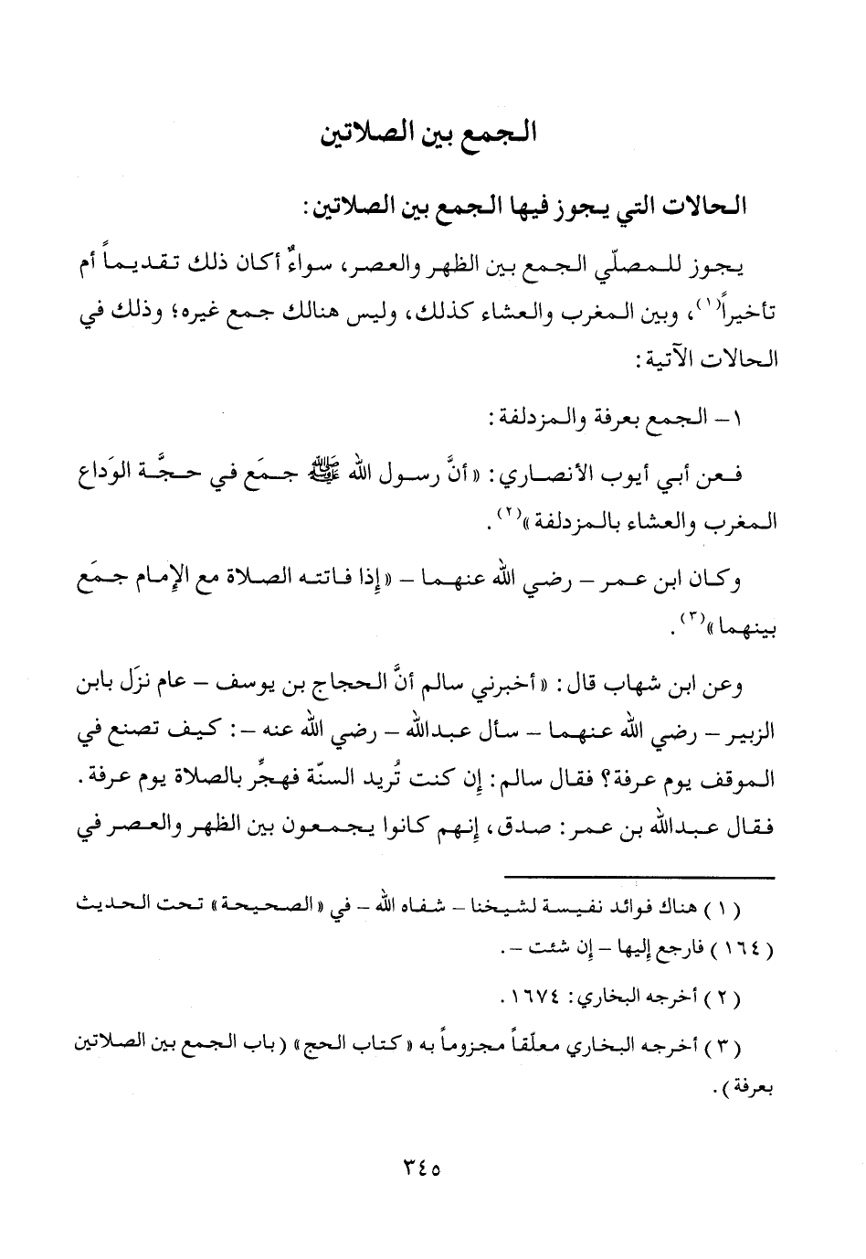 (¬3) أخرجه البخاري معلقاً مجزوماً به "كتاب الحج" (باب الجمع بين الصلاتين بعرفة).