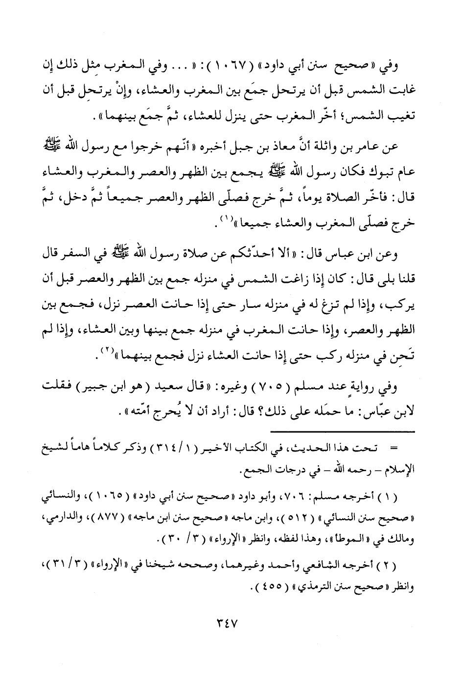 = تحت هذا الحديث، في الكتاب الأخير (1/ 314) وذكر كلاماً هاماً لشيخ الإِسلام -رحمه الله- في درجات الجمع.