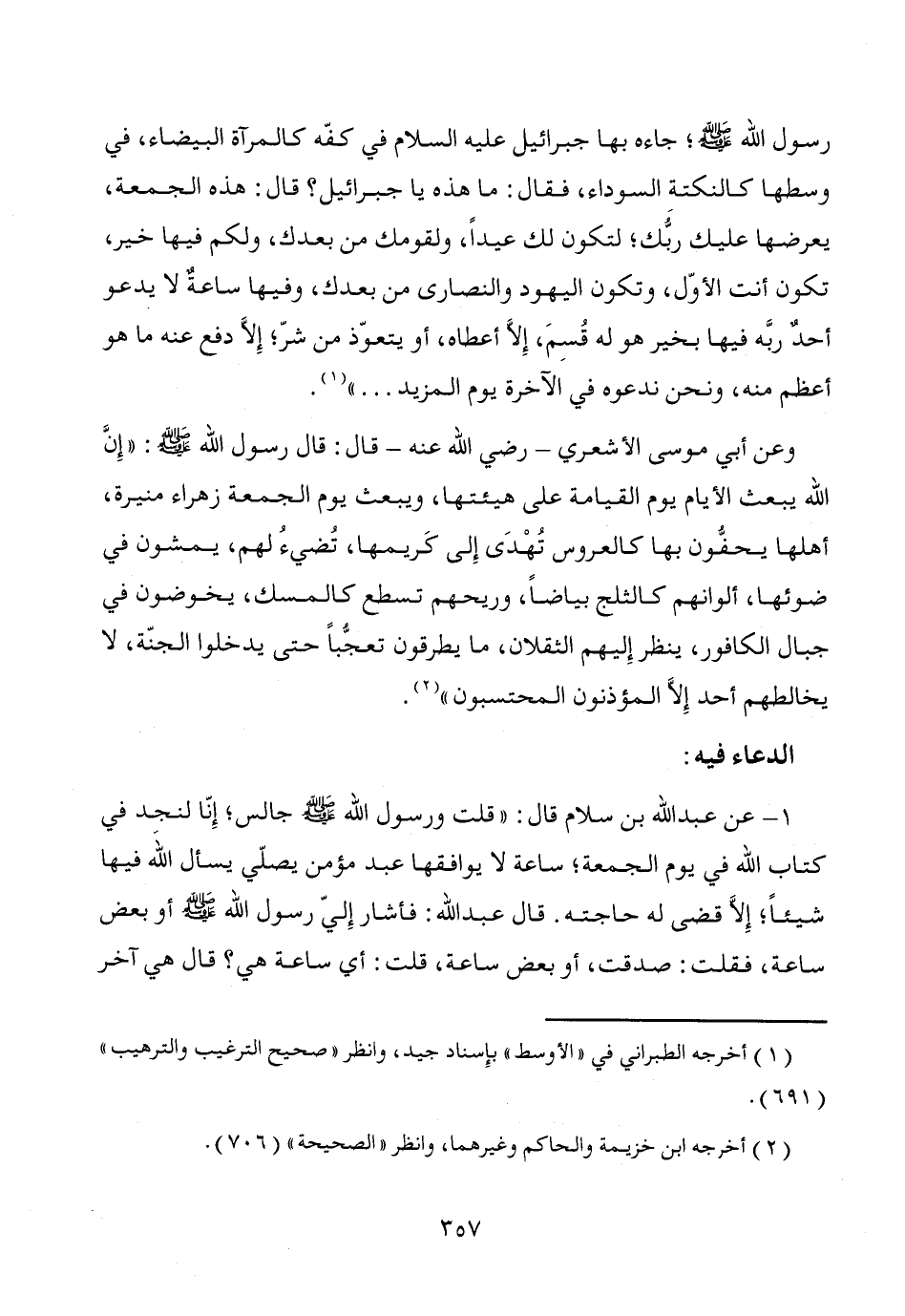 1 - عن عبد الله بن سلام قال: "قلت ورسول الله - صَلَّى اللَّهُ عَلَيْهِ وَسَلَّمَ - جالس؛ إِنّا لنجد في كتاب الله في يوم الجمعة؛ ساعة لا يوافقها عبد مؤمن يصلّي يسأل الله فيها شيئاً؛ إلاَّ قضى له حاجته. قال عبد الله: فأشار إِلىّ رسول الله - صَلَّى اللَّهُ عَلَيْهِ وَسَلَّمَ - أو بعض ساعة، فقلت: صدقت، أو بعض ساعة، قلت: أي ساعة هي؟ قال هي آخر