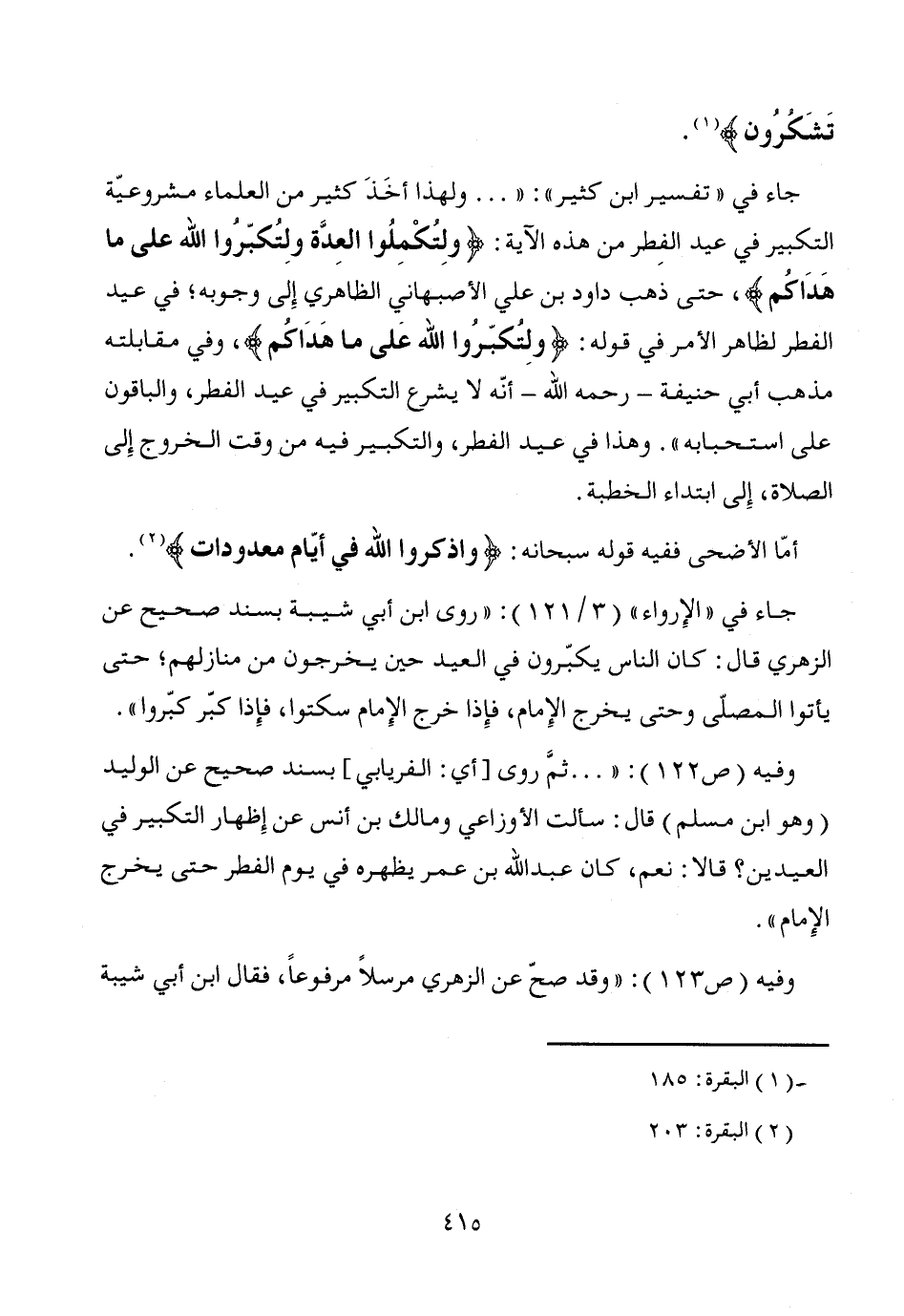أمّا الأضحى ففيه قوله سبحانه: {واذكروا الله في أيّام معدودات} (¬2).