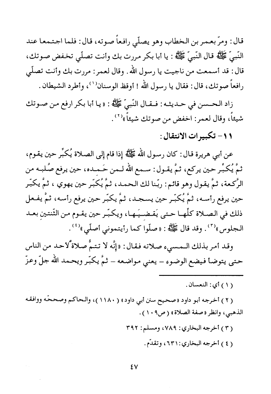 (¬2) أخرجه أبو داود "صحيح سنن أبي داود" (1180)، والحاكم وصححّه ووافقه الذهبي، وانظر "صفة الصلاة" (ص 109).