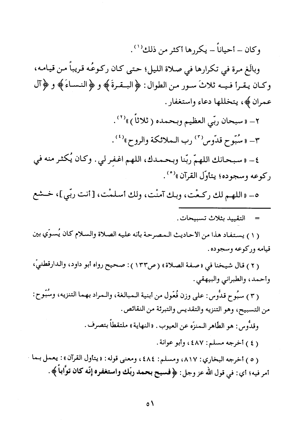 (¬5) أخرجه البخاري: 817، ومسلم: 484، ومعنى قوله: "يتأول القرآن": يعمل بما، أمر فيه؛ أي: في قول الله عز وجل: {فسبح بحمد ربك واستغفره إِنّه كان توَّاباً}.