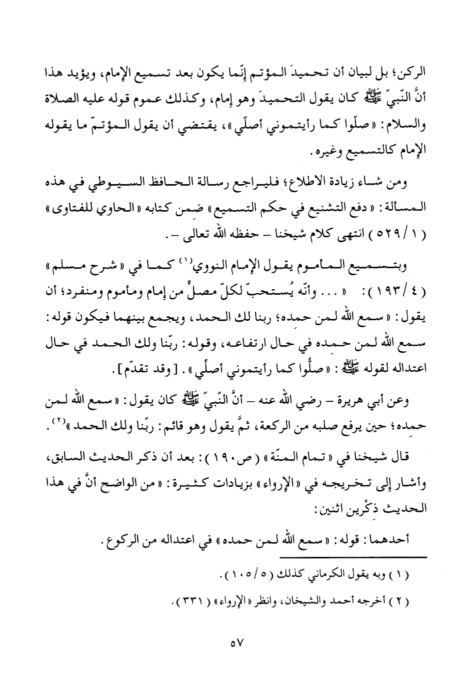 وبتسميع المأموم يقول الإِمام النووي (¬1) كما في "شرح مسلم" (4/ 193): " ... وأنّه يُستحبّ لكلّ مصلٍّ من إِمام ومأموم ومنفرد؛ أن يقول: "سمع الله لمن حمِده؛ ربنا لك الحمد، ويجمع بينهما فيكون قوله: يسمع الله لمن حمده في حال ارتفاعه، وقوله: ربّنا ولك الحمد في حال اعتداله لقوله - صَلَّى اللَّهُ عَلَيْهِ وَسَلَّمَ -: "صلُّوا كما رأيتموني أصلِّي". [وقد تقدّم].