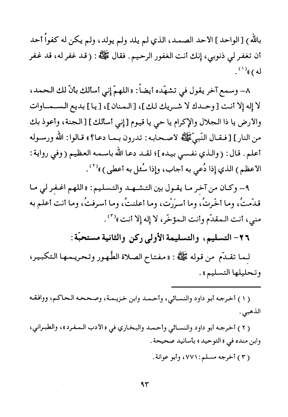 26 - التسليم، والتسليمة الأولى ركن والثانية مستحبّة: