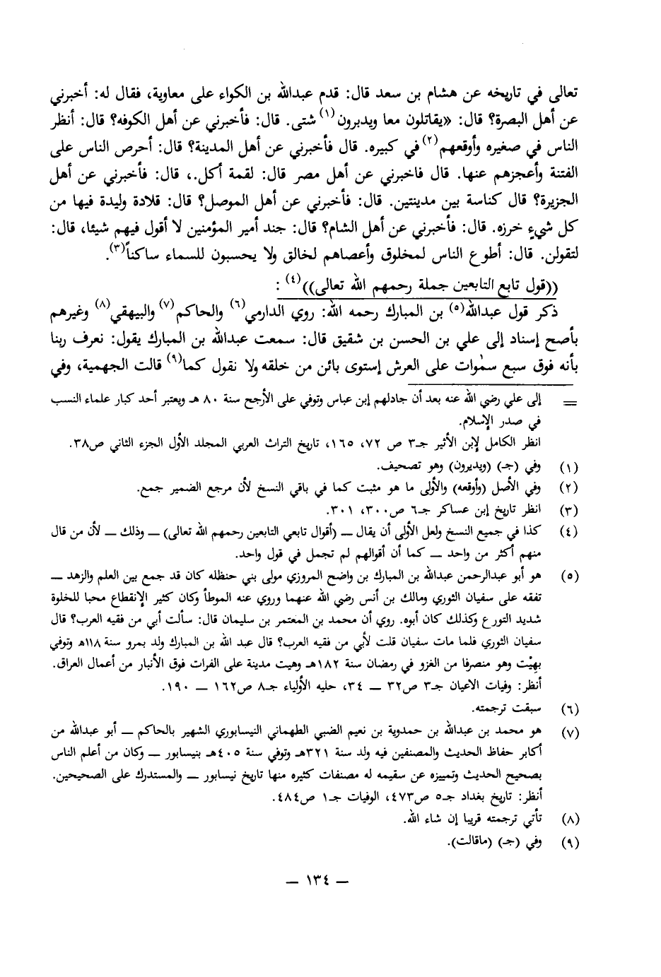 " قَوْلُ تَابِعِ التَّابِعِينَ جُمْلَةً رَحِمَهُمُ اللَّهُ تَعَالَى ":