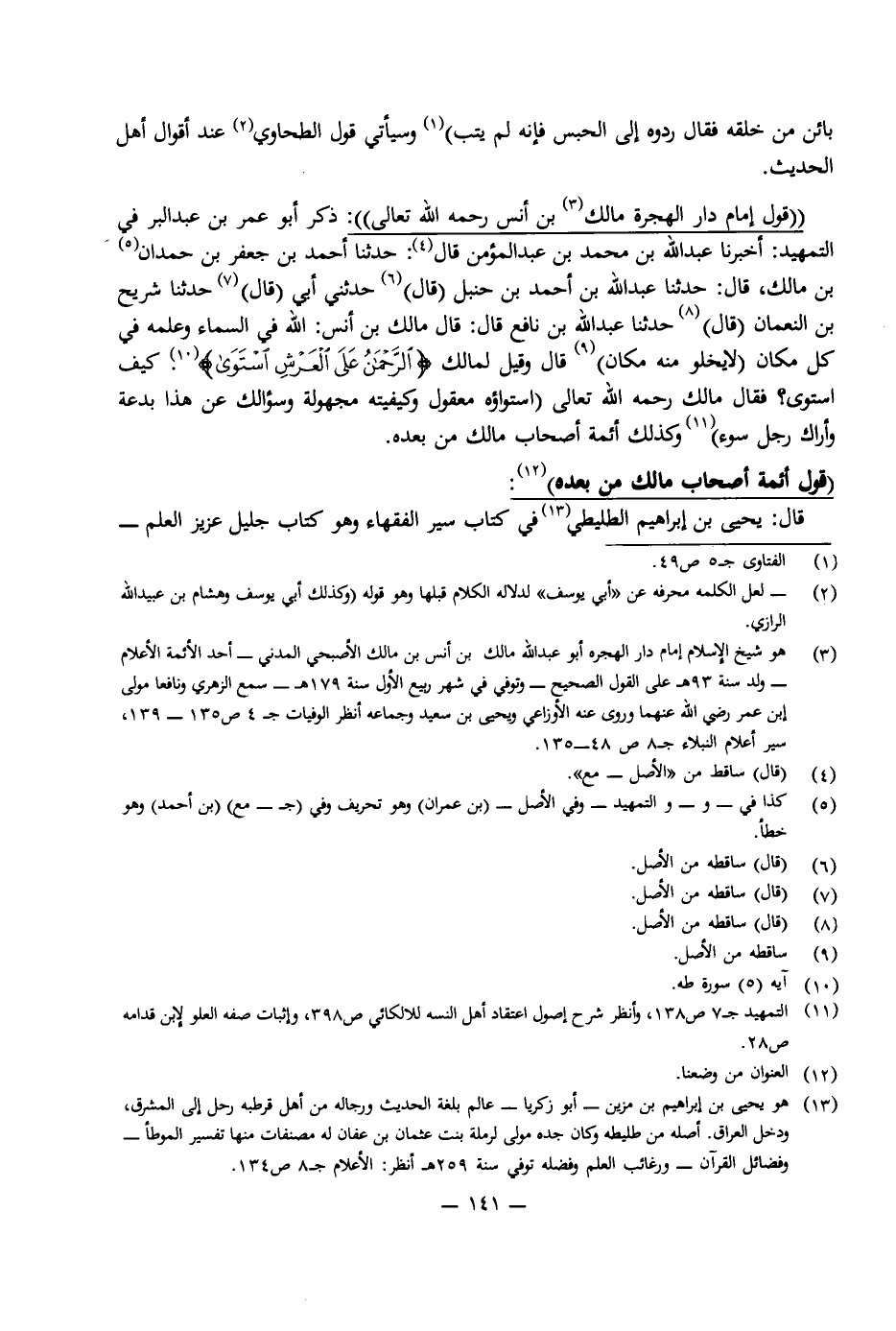 [قَوْلُ إِمَامِ دَارِ الْهِجْرَةِ مَالِكِ بْنِ أَنَسٍ رَحِمَهُ اللَّهُ تَعَالَى]