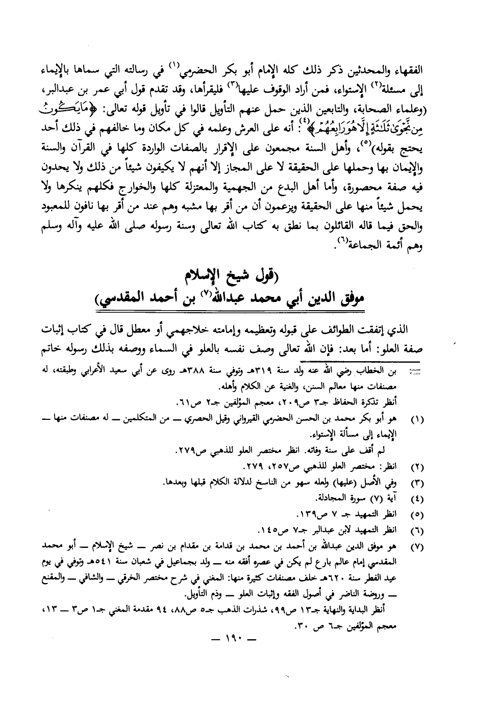 [قَوْلُ شَيْخِ الْإِسْلَامِ مُوَفَّقِ الدِّينِ أَبِي مُحَمَّدٍ عَبْدِ اللَّهِ بْنِ أَحْمَدَ الْمَقْدِسِيِّ]