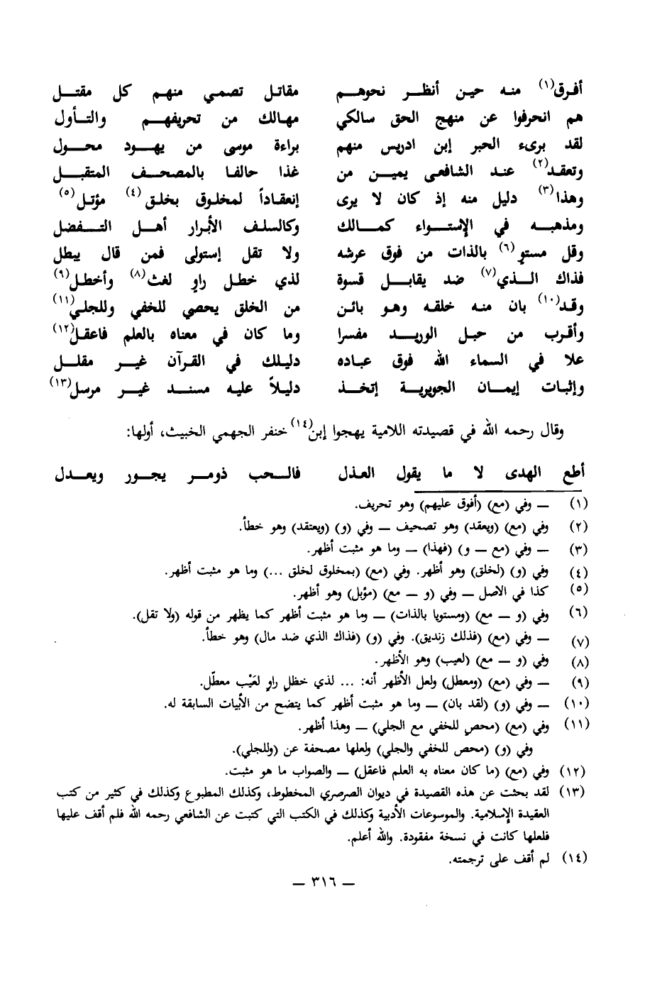 هُمُ انْحَرَفُوا عَنْ مَنْهَجِ الْحَقِّ سَالِكِي ... مَهَالِكَ مِنْ تَحْرِيفِهِمْ وَالتَّأَوُّلِ