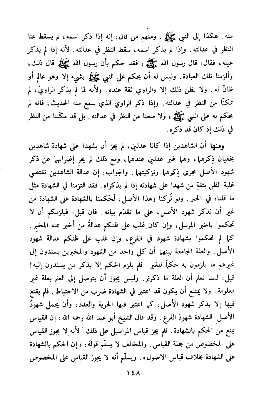 وَمِنْهَا أَن الشَّاهِدين إِذا كَانَا عَدْلَيْنِ لم يجز أَن يشهدَا على شَهَادَة شَاهِدين يخفيان ذكرهمَا وهما غير عَدْلَيْنِ عِنْدهمَا وَمَعَ ذَلِك لم يجر إضرابهما عَن ذكر شُهُود الأَصْل مجْرى ذكرهمَا وتزكيتهما وَالْجَوَاب إِن عَدَالَة الشَّاهِدين تَقْتَضِي غَلَبَة الظَّن بِثِقَة من شَهدا على شَهَادَته إِذا لم يذكراه فقد التزمنا فِي الشَّهَادَة مثل مَا قُلْنَاهُ فِي الْخَبَر وَلَو تركنَا وَهَذَا الأَصْل لحكمنا بِالشَّهَادَةِ على الشَّهَادَة من غير أَن نذْكر شُهُود الأَصْل على مَا تقدم بَيَانه فان قيل فيلزمكم أَن لَا تحكموا بالْخبر الْمُرْسل وَإِن كَانَ غلب على ظنكم عَدَالَة من أخبر عَنهُ الْمخبر كَمَا لم تحكموا بِشَهَادَة شُهُود فِي الْفَرْع وَإِن غلب على ظنكم عَدَالَة شُهُود الأَصْل وَالْعلَّة الجامعة بَينهمَا أَن كل وَاحِد من الشُّهُود والمخبرين يسندون إِلَى غَيرهم مَا يلزمون بِهِ حكما للْغَيْر فَلم يلْزم الحكم إِلَّا بِذكر من يسندون إِلَيْهِ قيل لسنا نعلم أَن الْعلَّة مَا ذكرْتُمْ وَلَيْسَ يجوز أَن يتَوَصَّل إِلَى الْعلم بعلة غير مَعْلُومَة وَلَا يمْتَنع أَن يكون قد اعْتبر فِي الشَّهَادَة ضرب من الِاحْتِيَاط فَلم يقنع فِيهَا إِلَّا بِذكر شُهُود الأَصْل كَمَا اعْتبر فِيهَا الْحُرِّيَّة وَالْعدَد وَأَن يحمل شُهُود الأَصْل الشَّهَادَة شُهُود الْفَرْع وَقد قَالَ الشَّيْخ ابو عبد الله رَحمَه الله إِن الْقيَاس يمْنَع من الحكم بِالشَّهَادَةِ فَلم يجز قِيَاس الْمَرَاسِيل على ذَلِك لِأَنَّهُ لَا يجوز الْقيَاس على الْمَخْصُوص من جملَة الْقيَاس والمخالف لَا يسلم قَوْله إِن الحكم بِالشَّهَادَةِ على الشَّهَادَة بِخِلَاف قِيَاس الاصول وَيسلم أَنه لَا يجوز الْقيَاس على الْمَخْصُوص