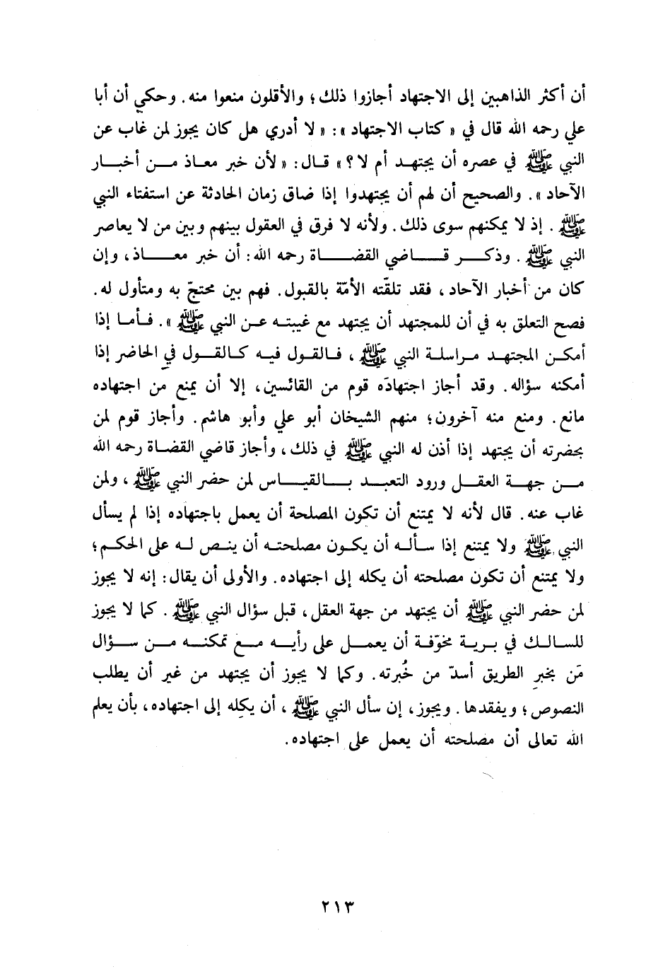 أَن أَكثر الذاهبين إِلَى الِاجْتِهَاد أَجَازُوا ذَلِك والأقلون منعُوا مِنْهُ وَحكي أَن أَبَا عَليّ رَحمَه الله قَالَ فِي كتاب الِاجْتِهَاد لَا أَدْرِي هَل كَانَ يجوز لمن غَابَ عَن النَّبِي صلى الله عَلَيْهِ وَسلم فِي عصره أَن يجْتَهد أم لَا قَالَ لِأَن خبر معَاذ من اخبار الْآحَاد وَالصَّحِيح أَن لَهُم أَن يجتهدوا إِذا ضَاقَ زمَان الْحَادِثَة عَن استفتاء النَّبِي صلى الله عَلَيْهِ وَسلم إِذْ لَا يُمكنهُم سوى ذَلِك وَلِأَنَّهُ لَا فرق فِي الْعُقُول بَينهم وَبَين من لَا يعاصر النَّبِي صلى الله عَلَيْهِ وَسلم وَذكر قَاضِي الْقُضَاة رَحمَه الله أَن خبر معَاذ وَإِن كَانَ من اخبار الْآحَاد فقد تَلَقَّتْهُ الْأمة بِالْقبُولِ فهم بَين مُحْتَج بِهِ ومتأول لَهُ فصح التَّعَلُّق بِهِ فِي أَن للمجتهد أَن يجْتَهد مَعَ غيبته عَن النَّبِي صلى الله عَلَيْهِ وَسلم فَأَما إِذا أمكن الْمُجْتَهد مراسلة النَّبِي صلى الله عَلَيْهِ وَسلم فَالْقَوْل فِيهِ كالقول فِي الْحَاضِر إِذا أمكنه سُؤَاله وَقد أجَاز اجْتِهَاده قوم من القائسين إِلَّا أَن يمْنَع من اجْتِهَاده مَانع وَمنع مِنْهُ آخَرُونَ مِنْهُم الشَّيْخَانِ أَبُو عَليّ وَأَبُو هَاشم وَأَجَازَ قوم لمن بِحَضْرَتِهِ أَن يجْتَهد إِذا أذن لَهُ النَّبِي صلى الله عَلَيْهِ وَسلم فِي ذَلِك وَأَجَازَ قَاضِي الْقُضَاة رَحمَه الله من جِهَة الْعقل وُرُود التَّعَبُّد بِالْقِيَاسِ لمن حضر النَّبِي صلى الله عَلَيْهِ وَسلم وَلمن غَابَ عَنهُ قَالَ لِأَنَّهُ لَا يمْتَنع أَن تكون الْمصلحَة أَن يعْمل بِاجْتِهَادِهِ إِذا لم يسْأَل النَّبِي صلى الله عَلَيْهِ وَسلم وَلَا يمْتَنع إِذا سَأَلَهُ أَن يكون مصْلحَته أَن ينص لَهُ على الحكم وَلَا يمْتَنع أَن تكون مصْلحَته أَن يكله إِلَى اجْتِهَاده وَالْأولَى أَن يُقَال إِنَّه لَا يجوز لمن حضر النَّبِي صلى الله عَلَيْهِ وَسلم أَن يجْتَهد من جِهَة الْعقل قبل سُؤال النَّبِي صلى الله عَلَيْهِ وَسلم كَمَا لَا يجوز للسالك فِي بَريَّة مخوفة أَن يعْمل على رَأْيه مَعَ تمكنه من سُؤال من بِخَبَر الطَّرِيق أَسد من خبرته وكما لَا يجوز أَن يجْتَهد من غير أَن يطْلب للنصوص ويفقدها وَيجوز إِن سَأَلَ النَّبِي صلى الله عَلَيْهِ وَسلم أَن يكله إِلَى اجْتِهَاده بِأَن يعلم الله تَعَالَى أَن مصْلحَته أَن يعْمل على اجْتِهَاده