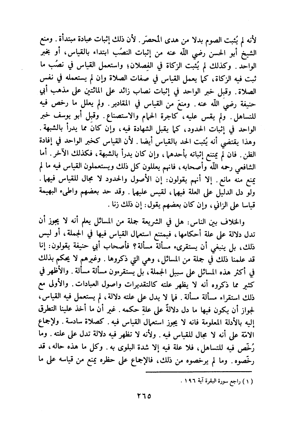 لِأَنَّهُ لم يثبت الصَّوْم بَدَلا من هدى الْمحصر لِأَن ذَلِك إِثْبَات عبَادَة مُبتَدأَة وَمنع الشَّيْخ أَبُو الْحسن رَضِي الله عَنهُ من إِثْبَات النصب ابْتِدَاء بِالْقِيَاسِ أَو بِخَبَر الْوَاحِد وَكَذَلِكَ لم يثبت الزَّكَاة فِي الفصلان وَاسْتعْمل الْقيَاس فِي نصب مَا ثَبت فِيهِ الزَّكَاة كَمَا يعْمل الْقيَاس فِي صِفَات الصَّلَاة وَإِن لم يَسْتَعْمِلهُ فِي نفس الصَّلَاة وَقبل خبر الْوَاحِد فِي إِثْبَات نِصَاب زَائِد على الْمِائَتَيْنِ على مَذْهَب أبي حنيفَة رَضِي الله عَنهُ وَمنع من الْقيَاس فِي الْمَقَادِير وَلم يُعلل مَا رخص فِيهِ للتساهل وَلم يقس عَلَيْهِ كاجرة الْحمام والاستصناع وَقبل أَبُو يُوسُف خبر الْوَاحِد فِي إِثْبَات الْحُدُود كَمَا يقبل الشَّهَادَة فِيهِ وَإِن كَانَ مِمَّا يدْرَأ بِالشُّبْهَةِ وَهَذَا يَقْتَضِي أَنه يثبت الْحَد بِالْقِيَاسِ أَيْضا لِأَن الْقيَاس كَخَبَر الْوَاحِد فِي إِفَادَة الظَّن فان لم يمْتَنع إثْبَاته بِأَحَدِهِمَا وَإِن كَانَ يدْرَأ بِالشُّبْهَةِ فَكَذَلِك الآخر أما الشَّافِعِي رَحمَه الله وَأَصْحَابه فانهم يعللون كل ذَلِك ويستعملون الْقيَاس فِيهِ مَا لم يمْنَع مِنْهُ مَانع إِلَّا أَنهم يَقُولُونَ إِن الْأُصُول وَالْحُدُود لَا مجَال للْقِيَاس فيهمَا وَلَو دلّ الدَّلِيل على الْعلَّة فيهمَا لقيس عَلَيْهِمَا وَقد حد بَعضهم واطىء الْبَهِيمَة قِيَاسا على الزَّانِي وَإِن كَانَ بَعضهم يَقُول إِن ذَلِك زنا