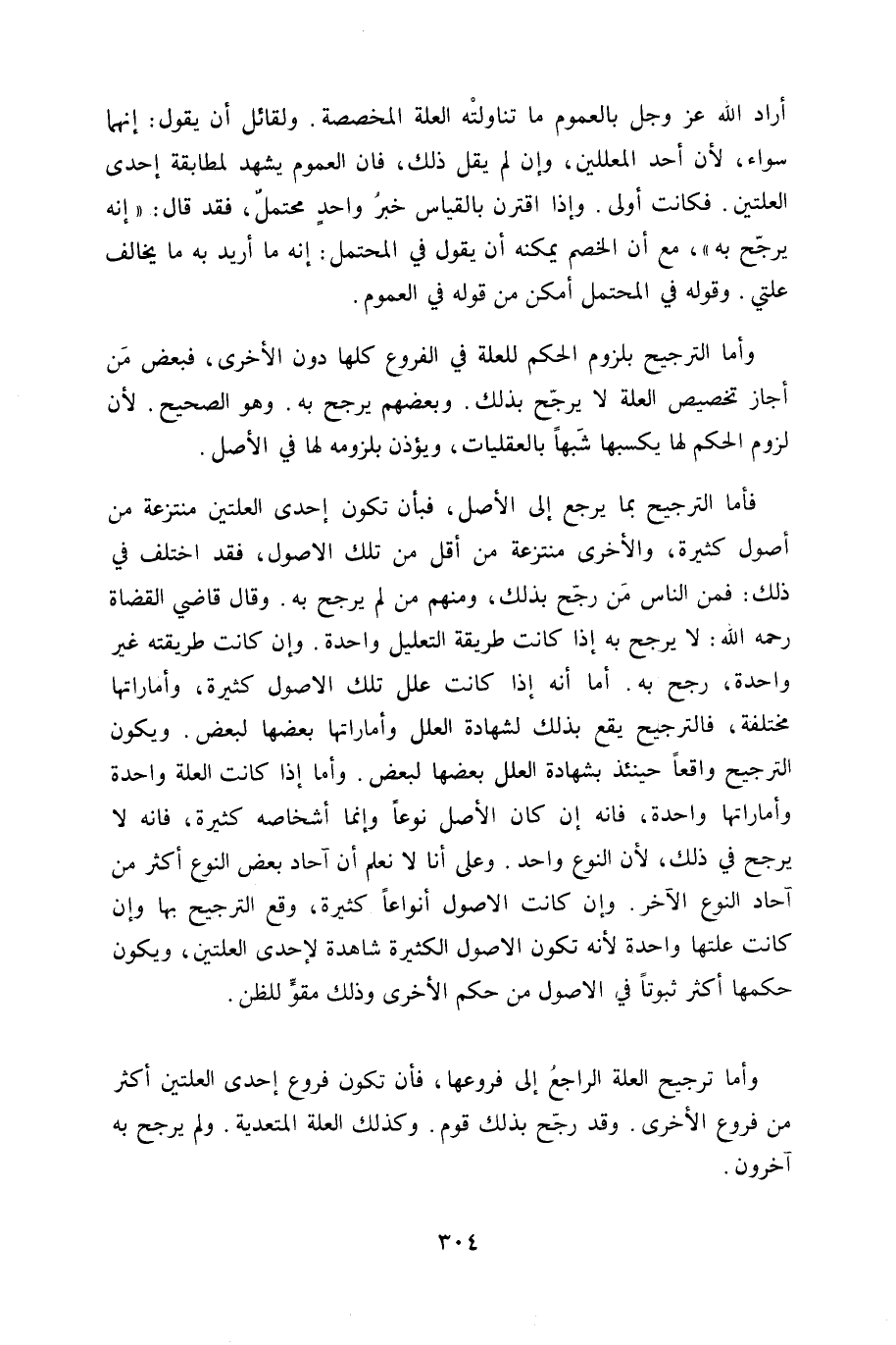 فَأَما التَّرْجِيح بِمَا يرجع إِلَى الأَصْل فبأن تكون إِحْدَى العلتين منتزعة من أصُول كَثِيرَة وَالْأُخْرَى منتزعة من أقل من تِلْكَ الْأُصُول فقد اخْتلف فِي ذَلِك فَمن النَّاس من رجح بذلك وَمِنْهُم من لم يرجح بِهِ وَقَالَ قَاضِي الْقُضَاة رَحمَه الله لَا يرجح بِهِ إِذا كَانَت طَريقَة التَّعْلِيل وَاحِدَة وَإِن كَانَت طَرِيقَته غير وَاحِدَة رجح بِهِ أما أَنه إِذا كَانَت علل تِلْكَ الْأُصُول كَثِيرَة وأماراتها مُخْتَلفَة فالترجيح يَقع بذلك لشهادة الْعِلَل وأماراتها بَعْضهَا لبَعض وَيكون التَّرْجِيح وَاقعا حِينَئِذٍ بِشَهَادَة الْعِلَل بَعْضهَا لبَعض وَأما إِذا كَانَت الْعلَّة وَاحِدَة وأماراتها وَاحِدَة فانه إِن كَانَ الأَصْل نوعا وَإِنَّمَا أشخاصه كَثِيرَة فانه لَا يرجح فِي ذَلِك لِأَن النَّوْع وَاحِد وعَلى أَنا لَا نعلم أَن آحَاد بعض النَّوْع أَكثر من آحَاد النَّوْع الآخر وَإِن كَانَت الاصول أنواعا كَثِيرَة وَقع التَّرْجِيح بهَا وَإِن كَانَت علتها وَاحِدَة لِأَنَّهُ تكون الْأُصُول الْكَثِيرَة شاهدة لإحدى العلتين وَيكون حكمهَا أَكثر ثبوتا فِي الْأُصُول من حكم الْأُخْرَى وَذَلِكَ مقو للظن