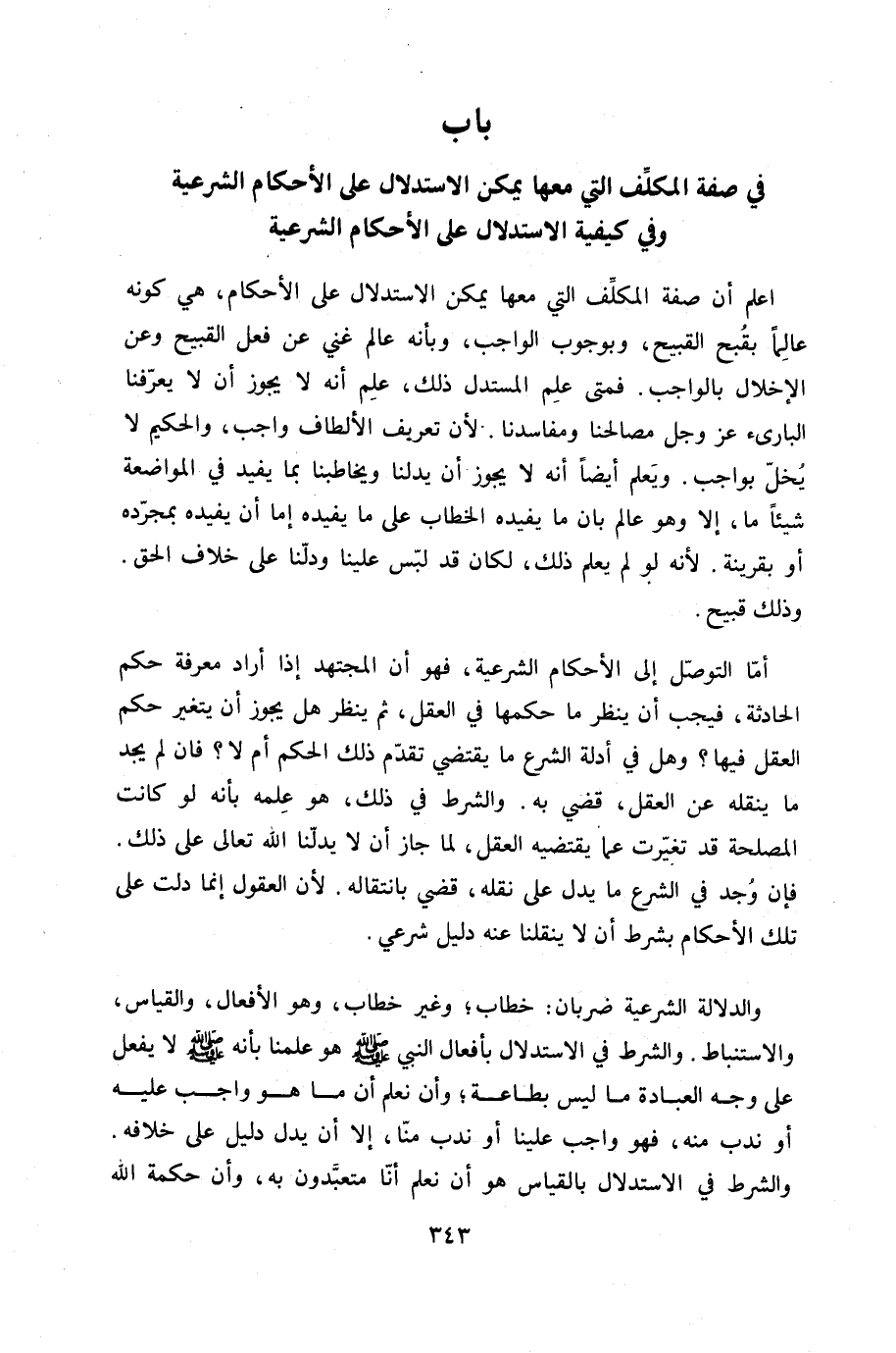 - صَلَّى اللَّهُ عَلَيْهِ وَسَلَّم َ - بَاب فِي صفة الْمُكَلف الَّتِي مَعهَا يُمكن الِاسْتِدْلَال على الْأَحْكَام الشَّرْعِيَّة وَفِي كَيْفيَّة الِاسْتِدْلَال على الْأَحْكَام الشَّرْعِيَّة - صَلَّى اللَّهُ عَلَيْهِ وَسَلَّم َ -