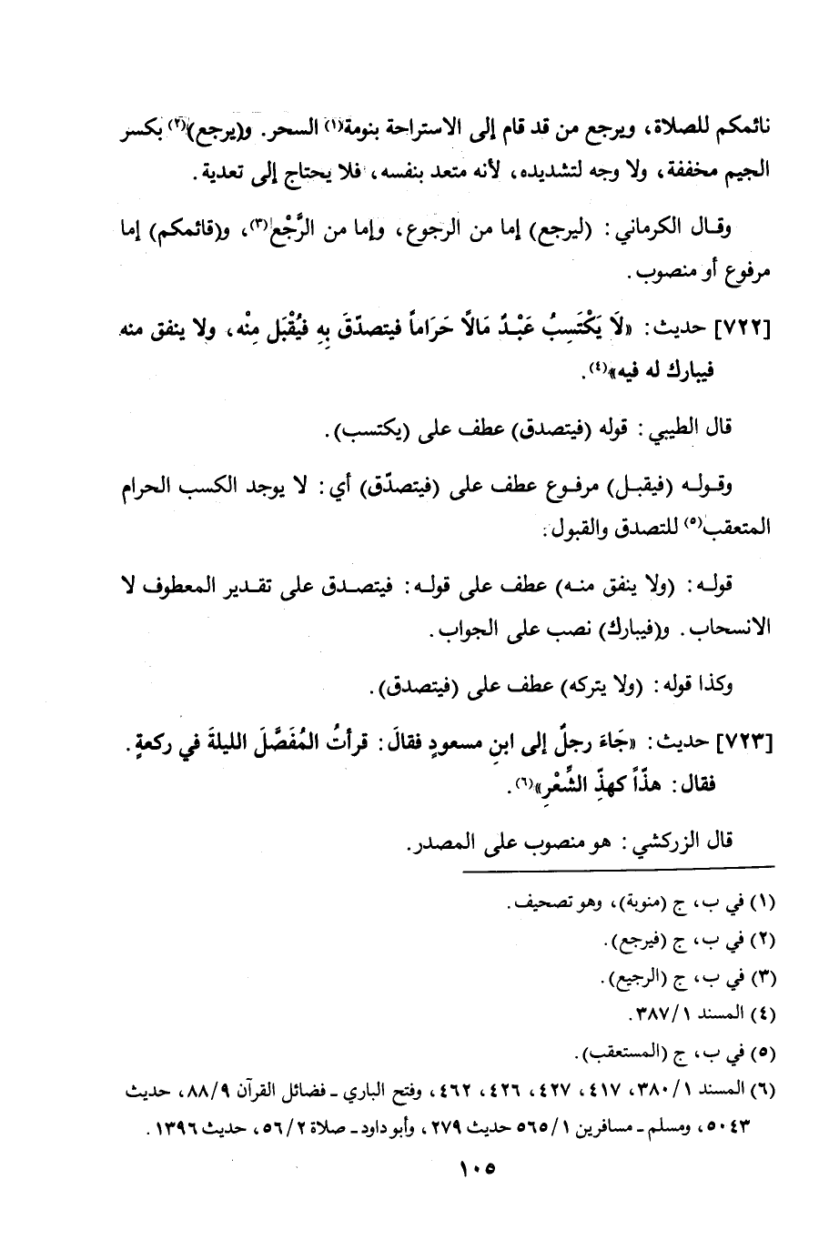 وقال الكرماني: (ليرجع) إما من الرجوع، وإما من الرَّجْعن و (قائمكم) إما مرفوع أو منصوب.