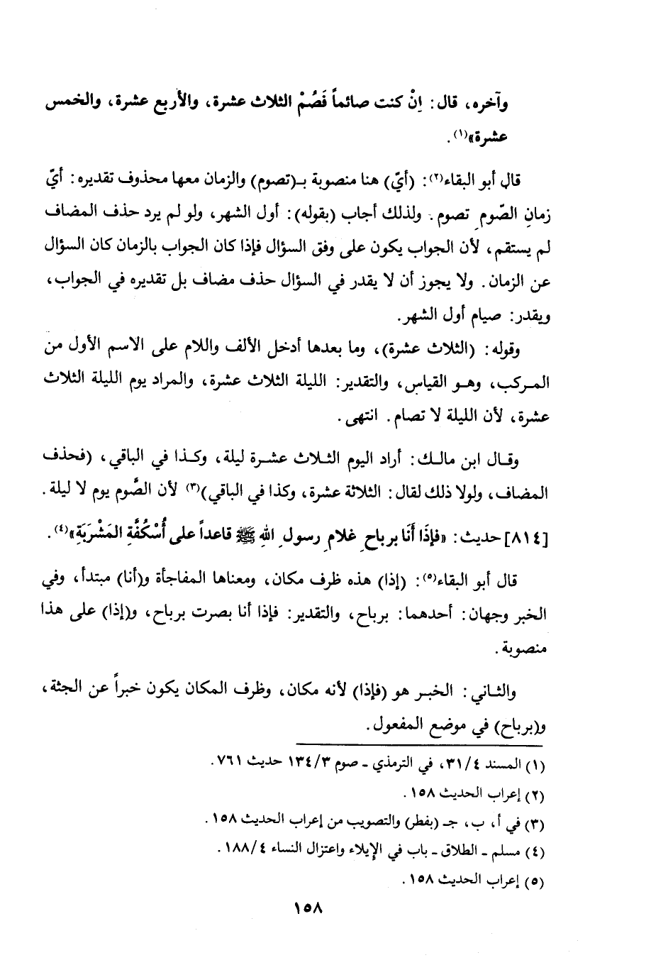 وقوله: (الثلاث عشرة)، وما بعدها أدخل الألف واللام على الاسم الأول من المركب، وهو القياس، والتقدير: الليلة الثلاث عشرة، والمراد يوم الليلة الثلاث عشرة، لأن الليلة لا تصام. انتهى.