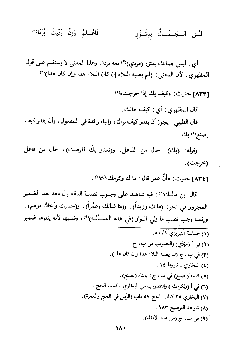 أي: ليس جمالك بمئزر (مردي) معه بردا. وهذا المعنى لا يستقيم على قول المظهري. لأن المعنى: (لم يصبه البلاء إن كان البلاء هذا وإن كان هذا).