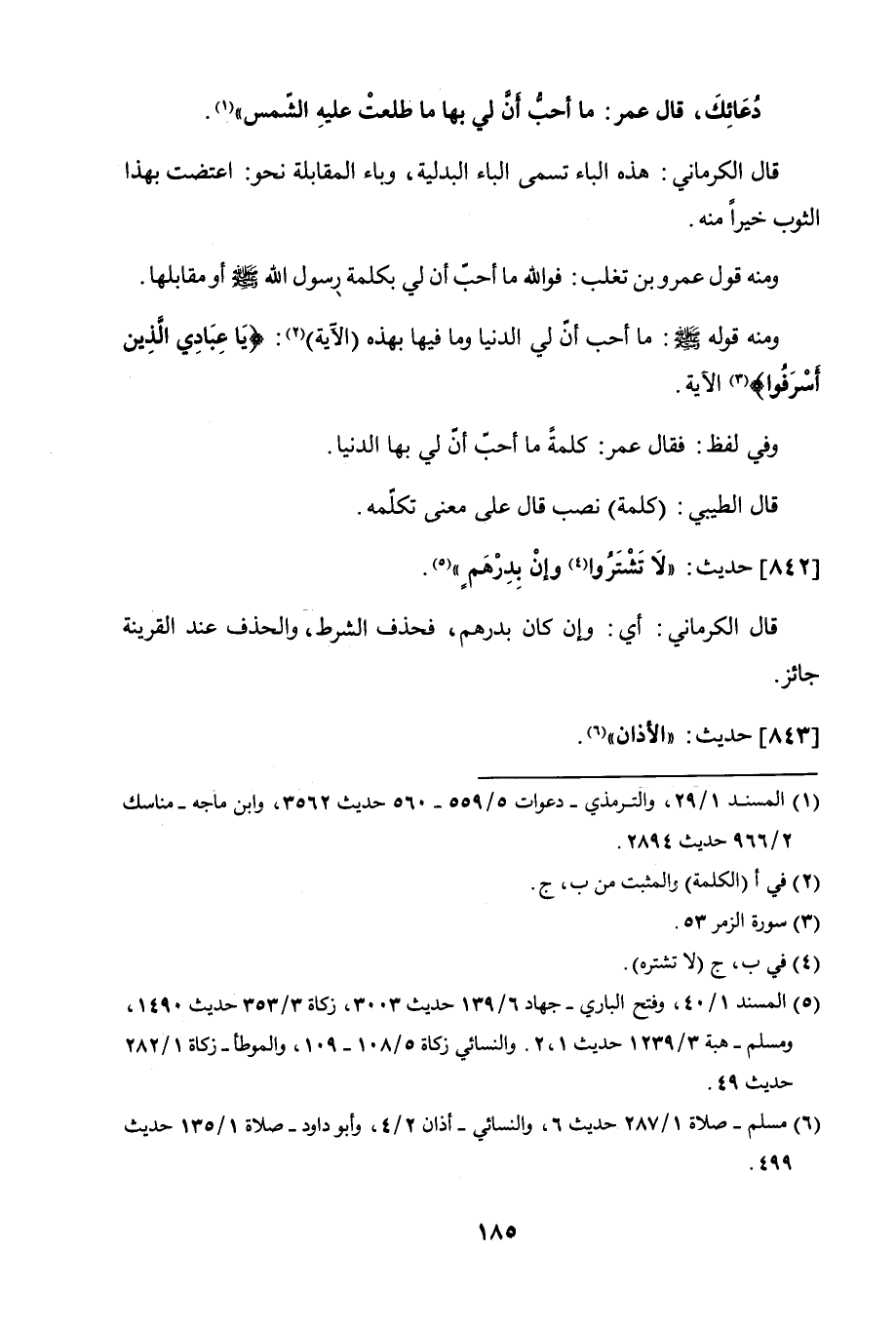 وفي لفظ: فقال عمر: كلمة ما أحبّ أن لي بها الدنيا.