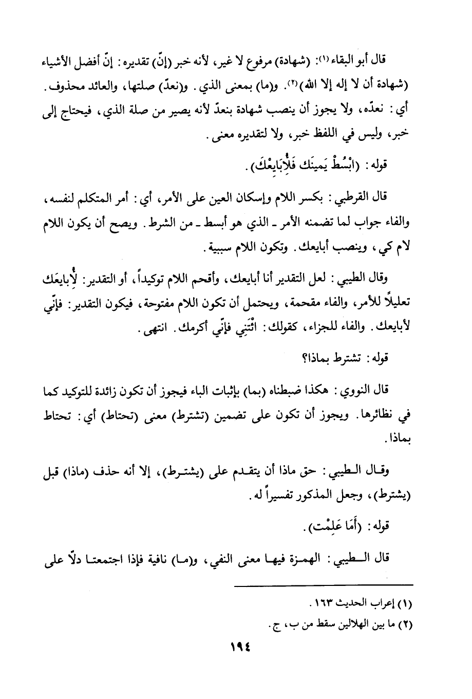 وقال الطيبي: لعل التقدير أنا أبايعك، وأقحم اللام توكيدًا، أو التقدير: لأبايعَك تعليلاً للأمر، والفاء مقحمة، ويحتمل أن تكون اللام مفتوحة، فيكون التقدير: فإنّي لأبايعك. والفاء للجزاء، كقولك: ائتني فإنّي أكرمك. انتهى.