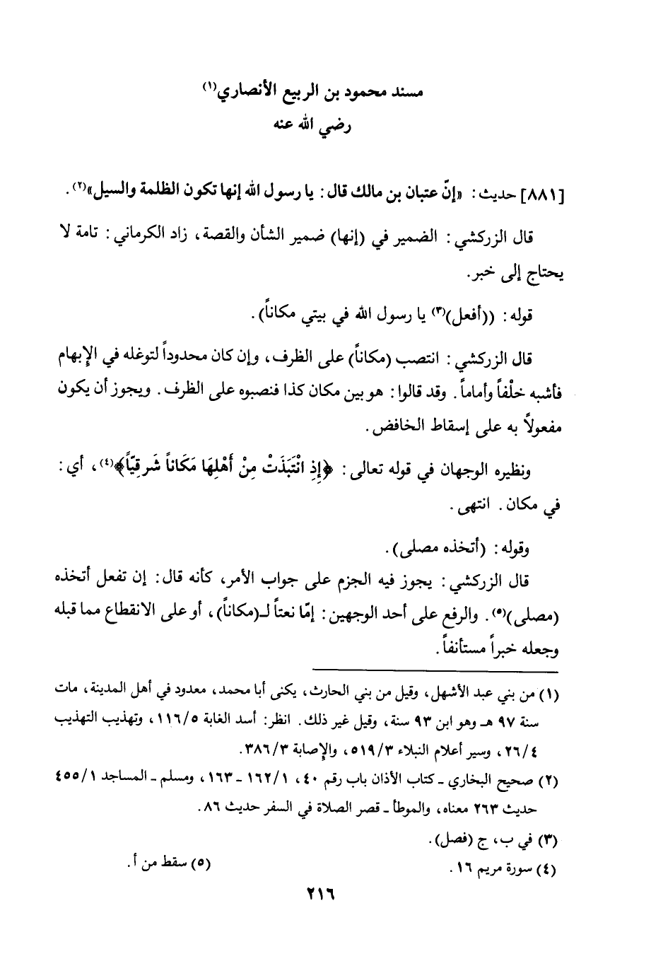 881 - حديث: "إنّ عتبان بن مالك قال: يا رسول الله إنها تكون الظلمة والسيل".