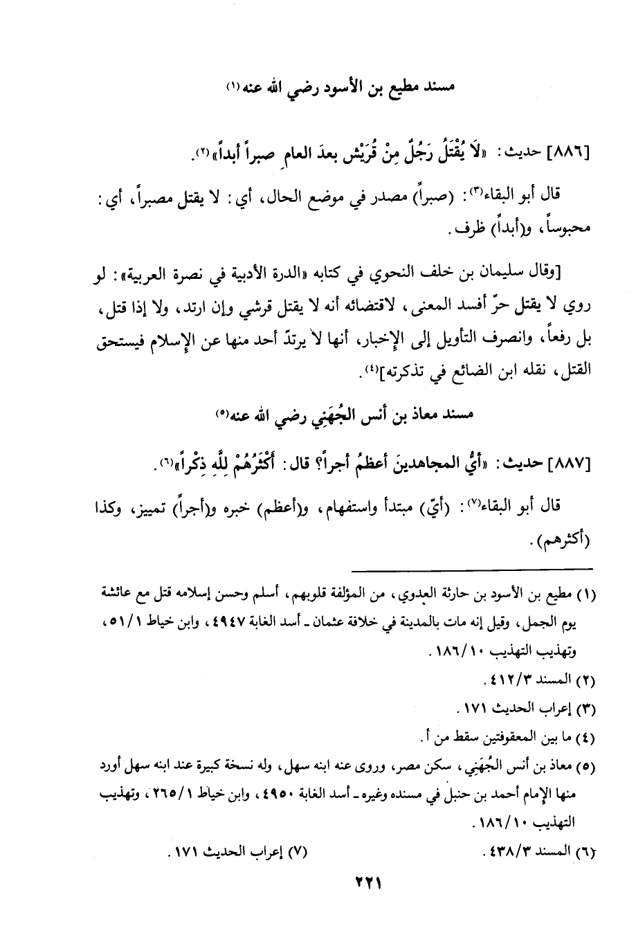 886 - حديث: "لا يقتل رجل من قريش بعد العام صبرًا أبدًا".