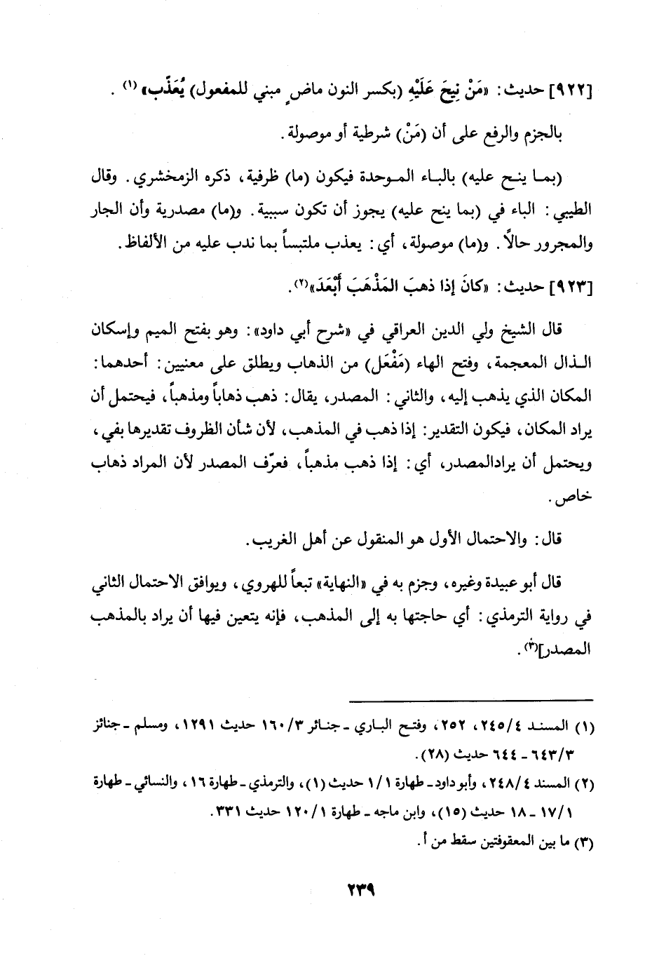 923 - حديث: "كان إذا ذهب المذهبَ أبعد".